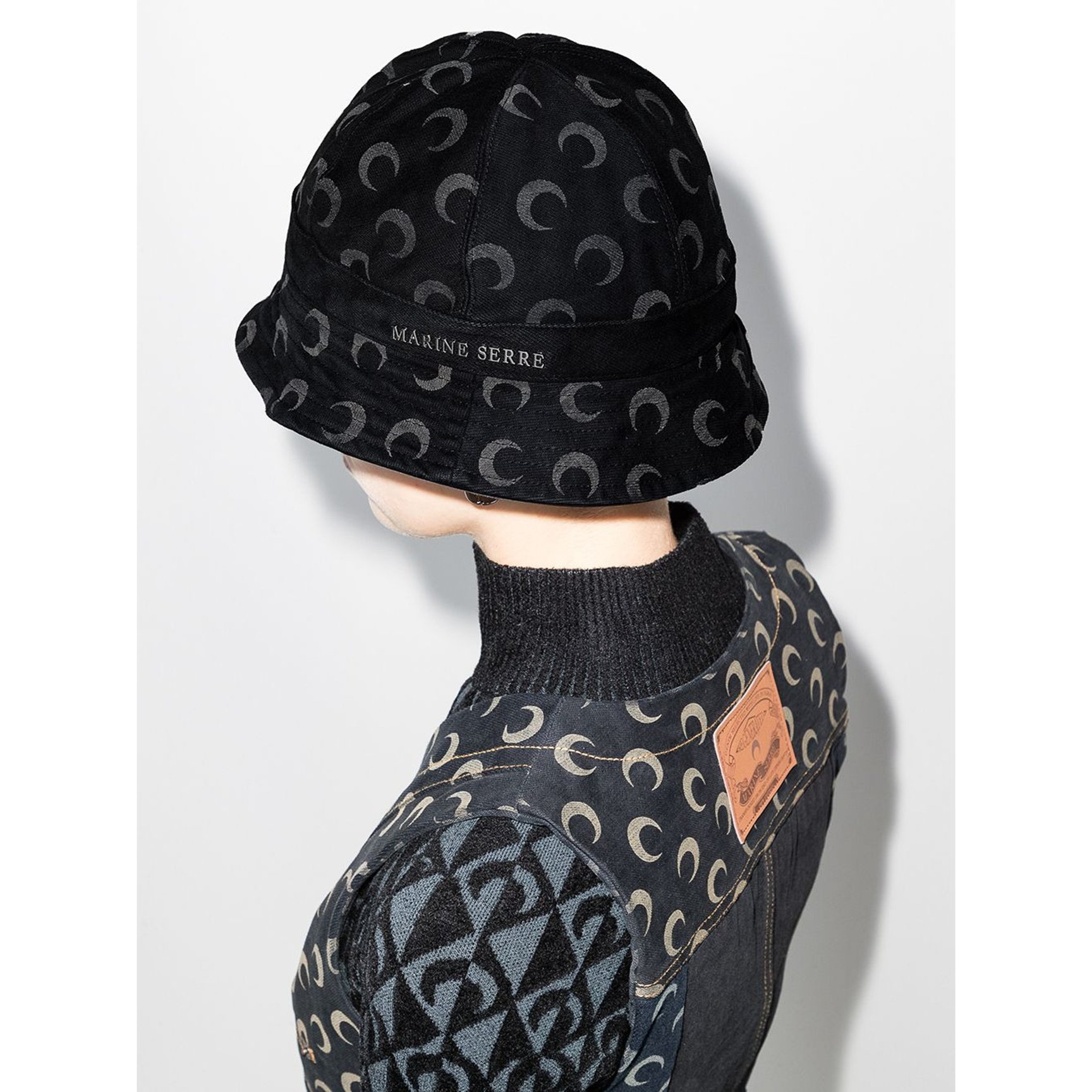 シグネチャーの三日月が散りばめられた、「マリーン?セル(MARINE SERRE)」のバケットハット。落ち着きのあるブラックデニムのボディがカジュアルなスタイリングにハマる、どこか品が漂うアイテムです。洗濯機洗いが可能なのも嬉しい限り。