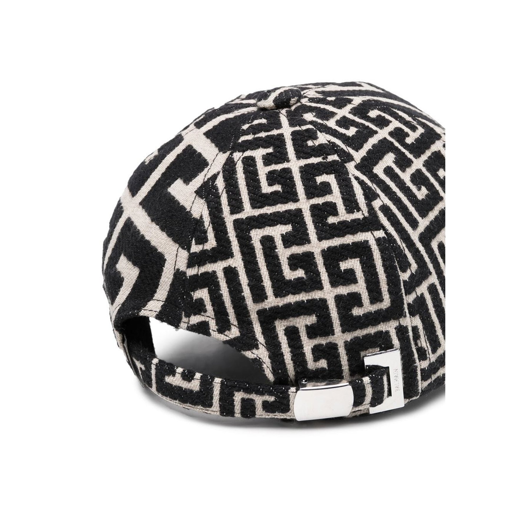 かっちりとしたハードな質感と、パネルデザインのモノグラムに視線が集中しそうな「バルマン(BALMAIN)」のキャップ。あえて主張させたシルバーのバックルが、グラマラスなアクセントになっています。色違いには、控えめなトーンのネイビーもラインナップ。