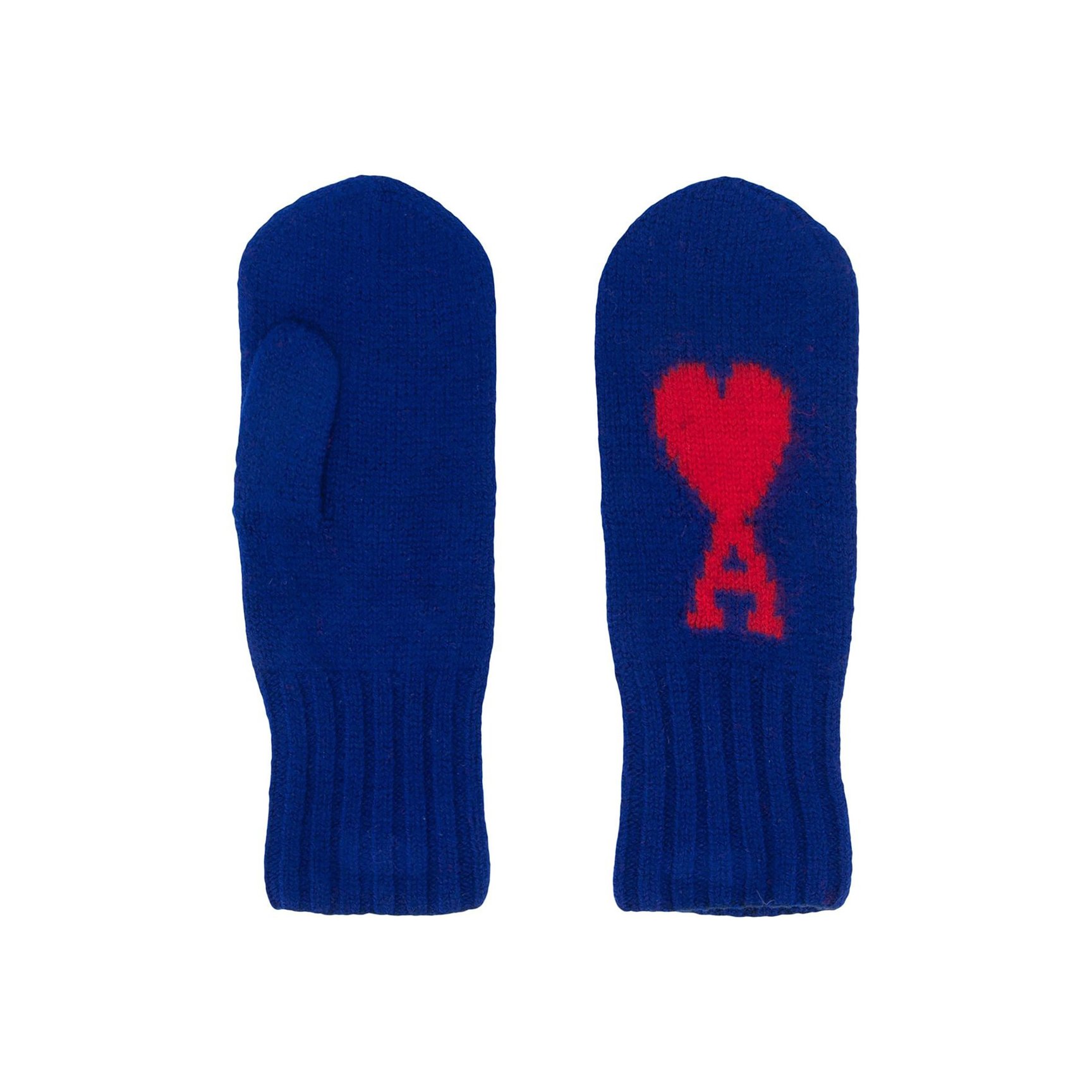 「アミ アレクサンドル マテュッシ(ami alexandre mattiussi)」のニットミトンは、ブランドのシンボル、「A」とハートモチーフを組み合わせたマークが大きくあしらわれています。