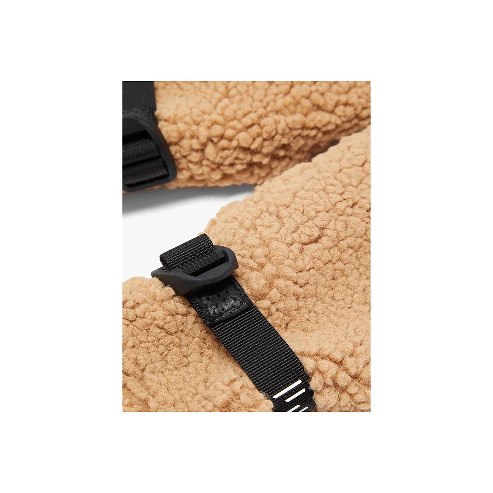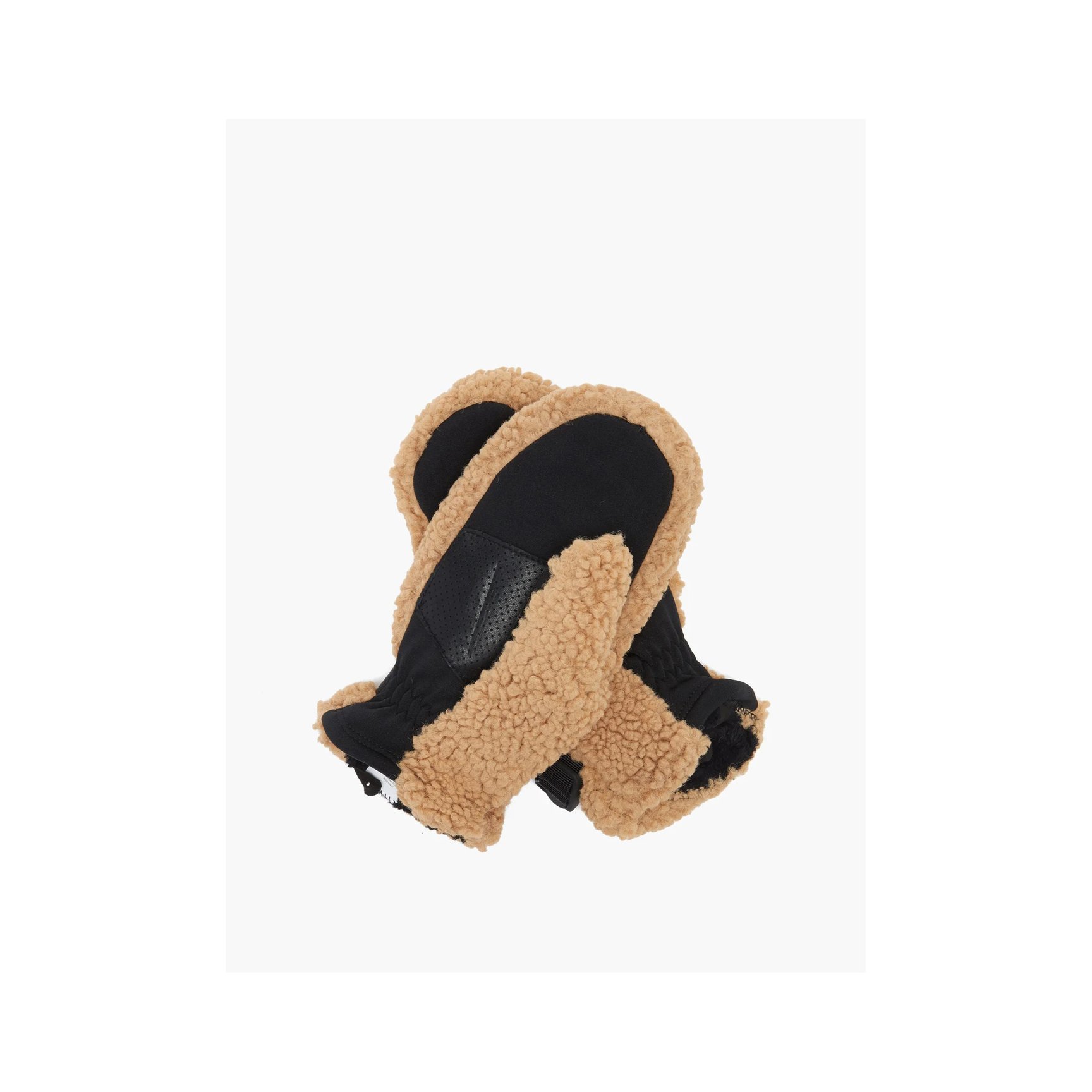 デザインも機能性も妥協しないモノづくりをするスノボウェアブランド「ホールデン(HOLDEN)」のシアリング素材のミトン。見るからにあたたかそうなもこもこのフェイクシアリングは、実は通気性◎。ブラックのソフトシェル素材を用いた手のひら側にはレザーが添えられ、シャープさも併せ持つバイカラーデザイン。