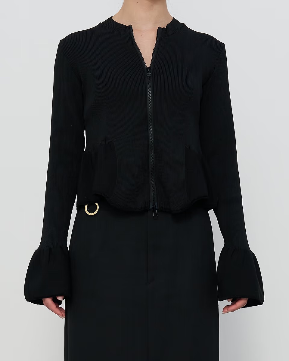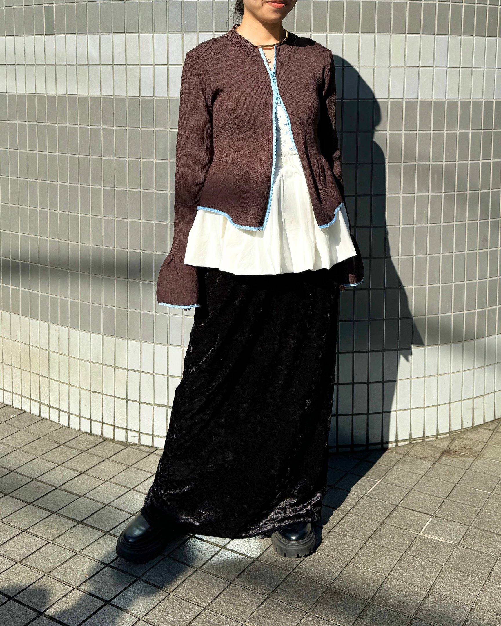 「オダカ」は個人的に毎シーズン注目しているブランド。「マラミュート(malamute)」から改名した23AWシーズンも変わらず、デザイナーの小高さんと確かな技術を継承する日本のニット職人が手を取り、1本の糸から織りなす繊細なデザインや見るほどに欲しくなる細かなディテールが存分に詰め込まれたラインナップで、その丁寧なモノづくりに心惹かれます。このカーディガンも、スポーツウェアなどに使われる伸縮性がある糸で編み上げた生地を用いて、ニット特有のほっこり感を薄めシーズン問わず楽しめる雰囲気に仕上げられた一着。とはいえ、ボディラインを綺麗に見せてくれるタイトシルエットや、エレガントな袖や裾のフリルなど、"強さと柔らかさを併せもつ現代女性のためのデイリーウェア"というコンセプト通りのディティールもしっかり盛り込まれているのが完全にツボです。今更と言わず、このカーディガンと残り少ない今年の冬を楽しみつつ、暖かい春がやってくるのを待ちたいと思います。