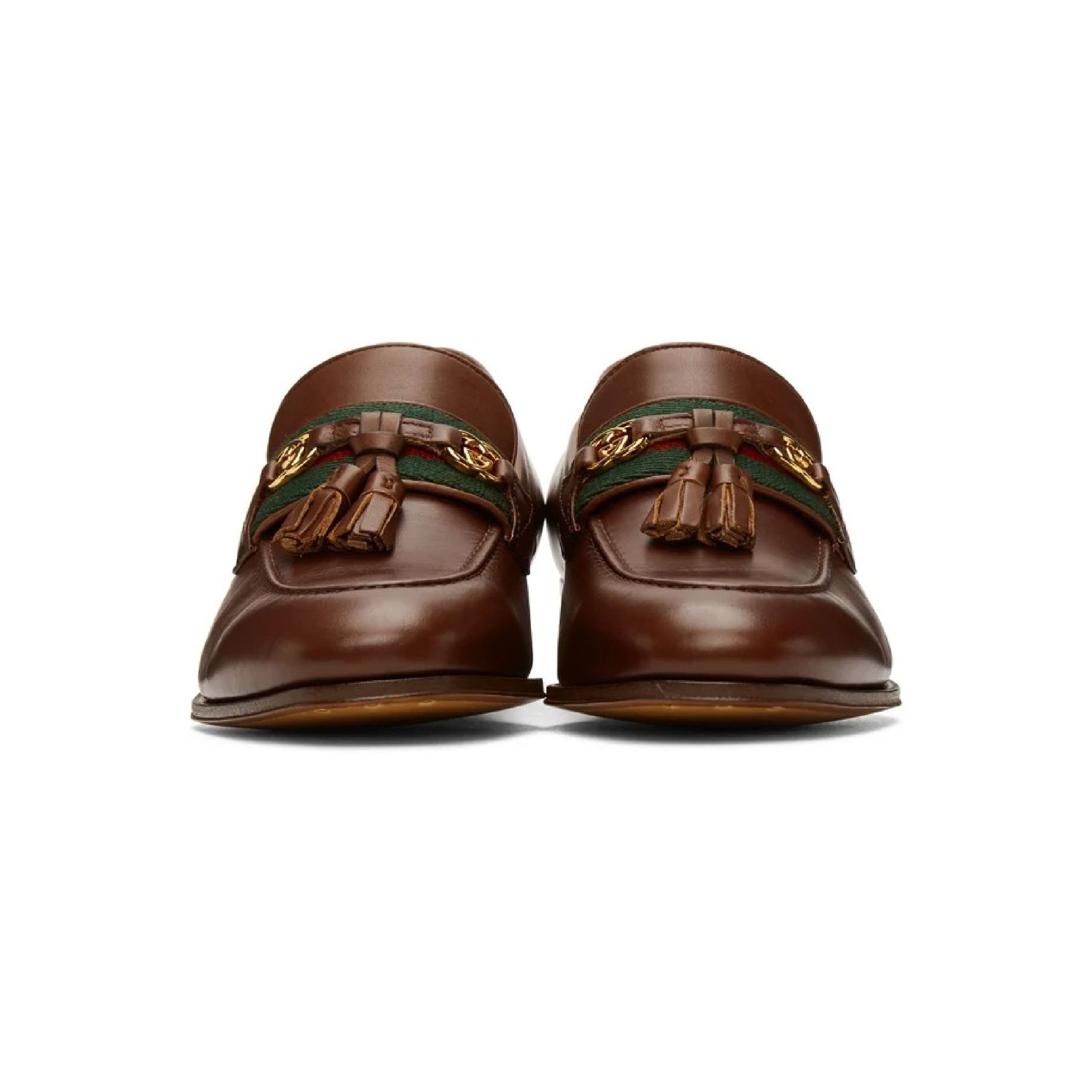 最後にご紹介するアイテムは、2足目として候補に挙げたい「グッチ(GUCCI)」のインターロッキングGローファー。気品あるカジュアルスタイルを堪能できるブラウンスムースレザーと、タッセルなどブランドの伝統を感じるディテールは、廃れることのないアイコニックなデザインです。