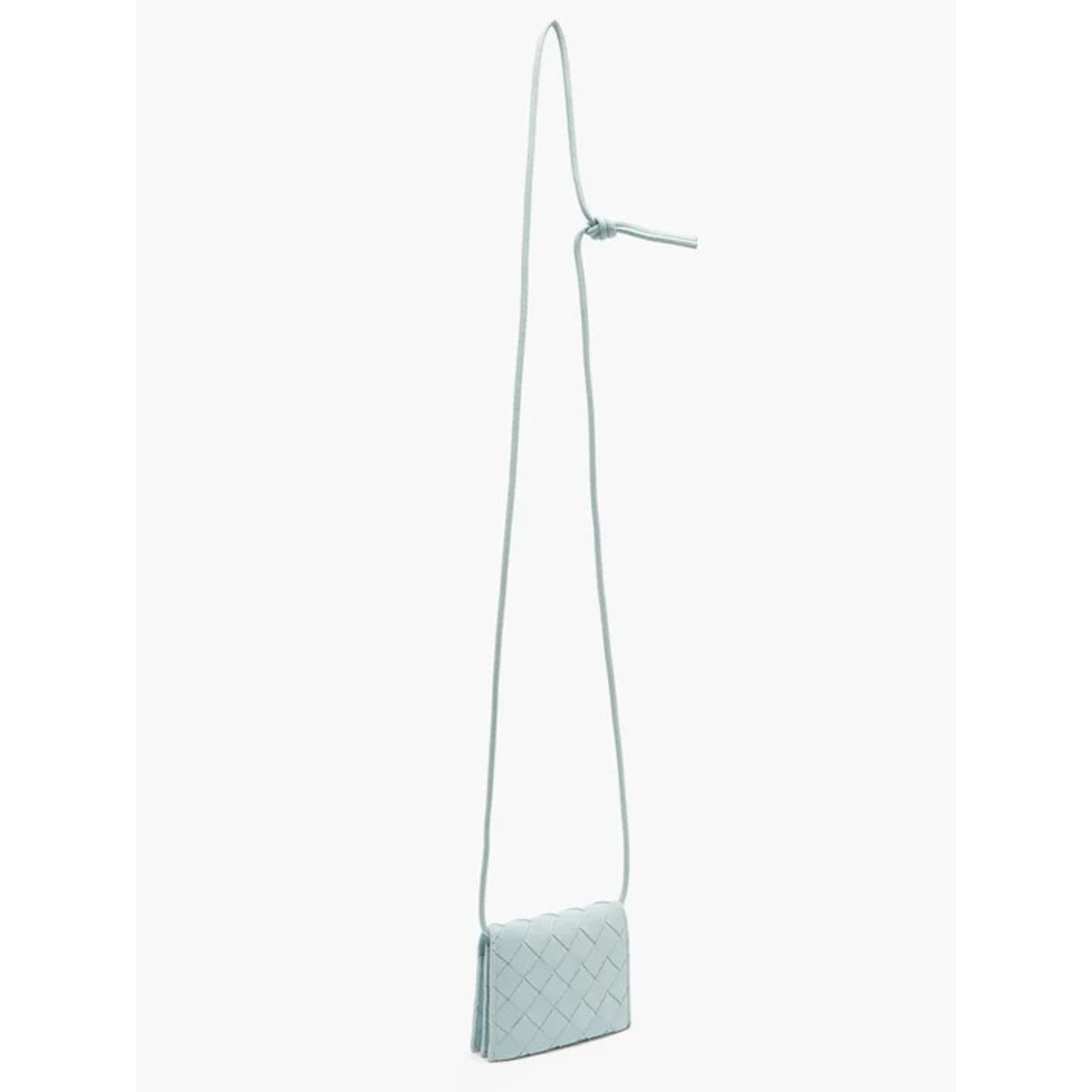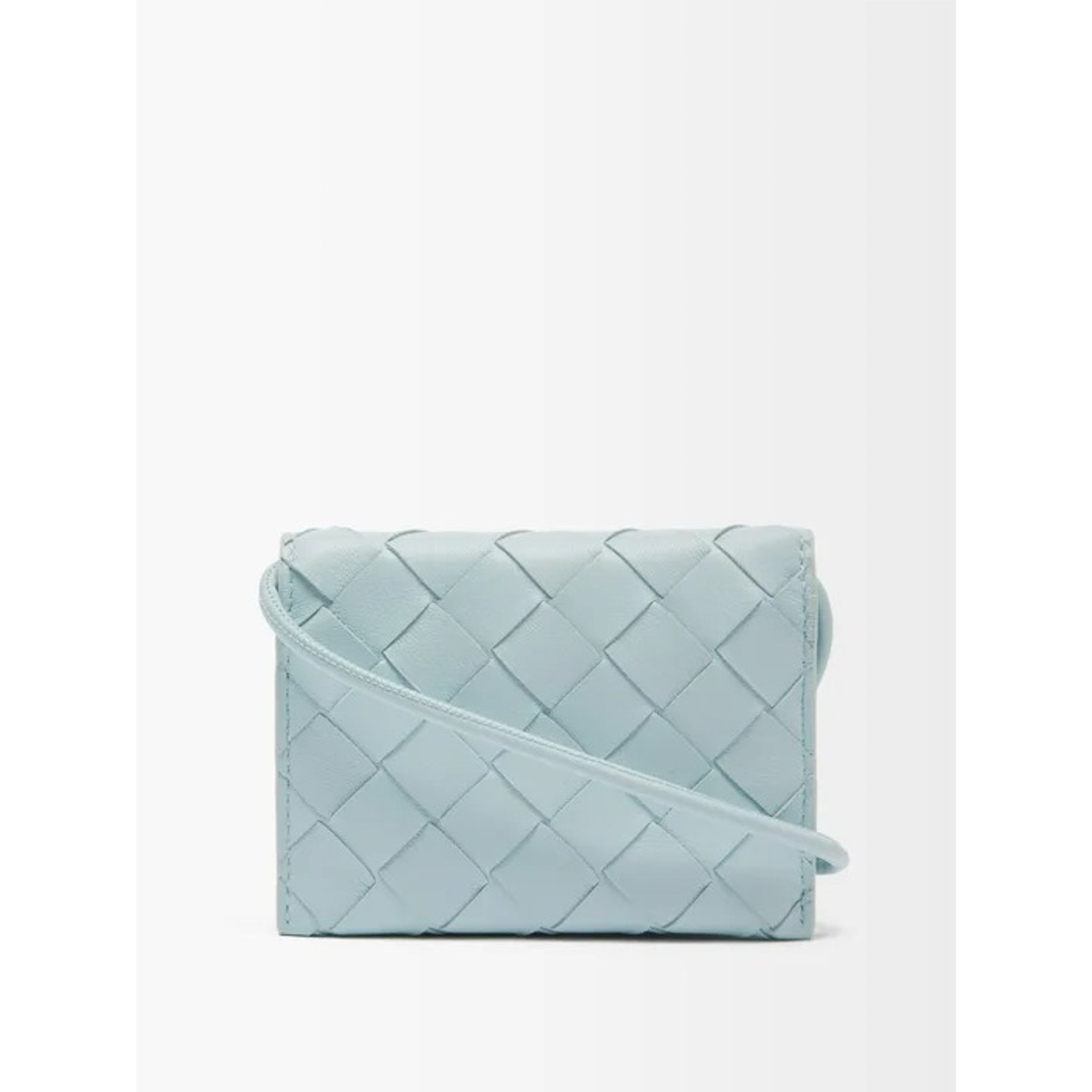 爽やかなパステルブルーに心躍る、「ボッテガ?ヴェネタ(BOTTEGA VENETA)」のストラップ付きカードケース。シグネチャーのイントレチャートが高貴な存在感を示す、ショルダーバッグさながらの一品です。色違いにはピンクとブラックをラインナップ。