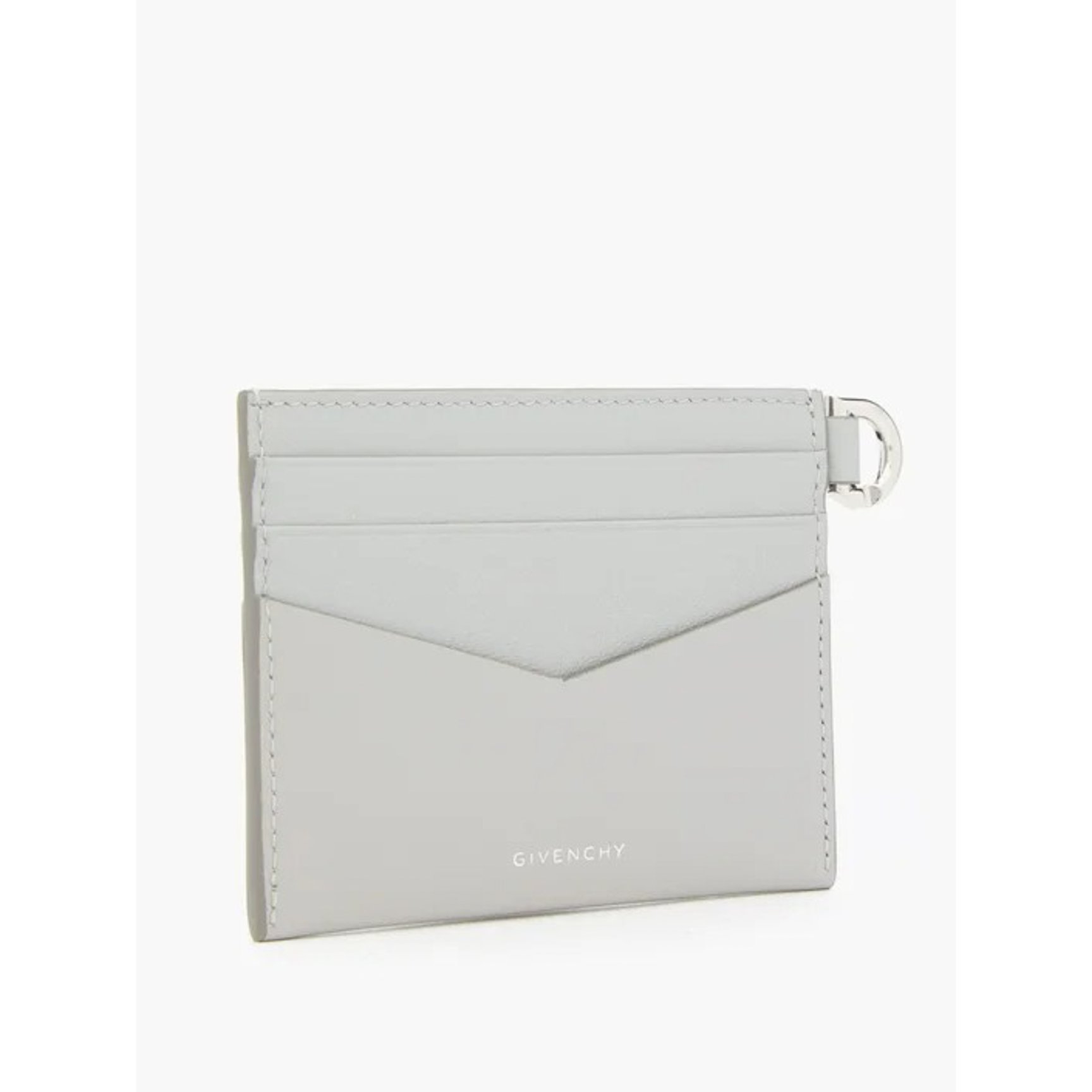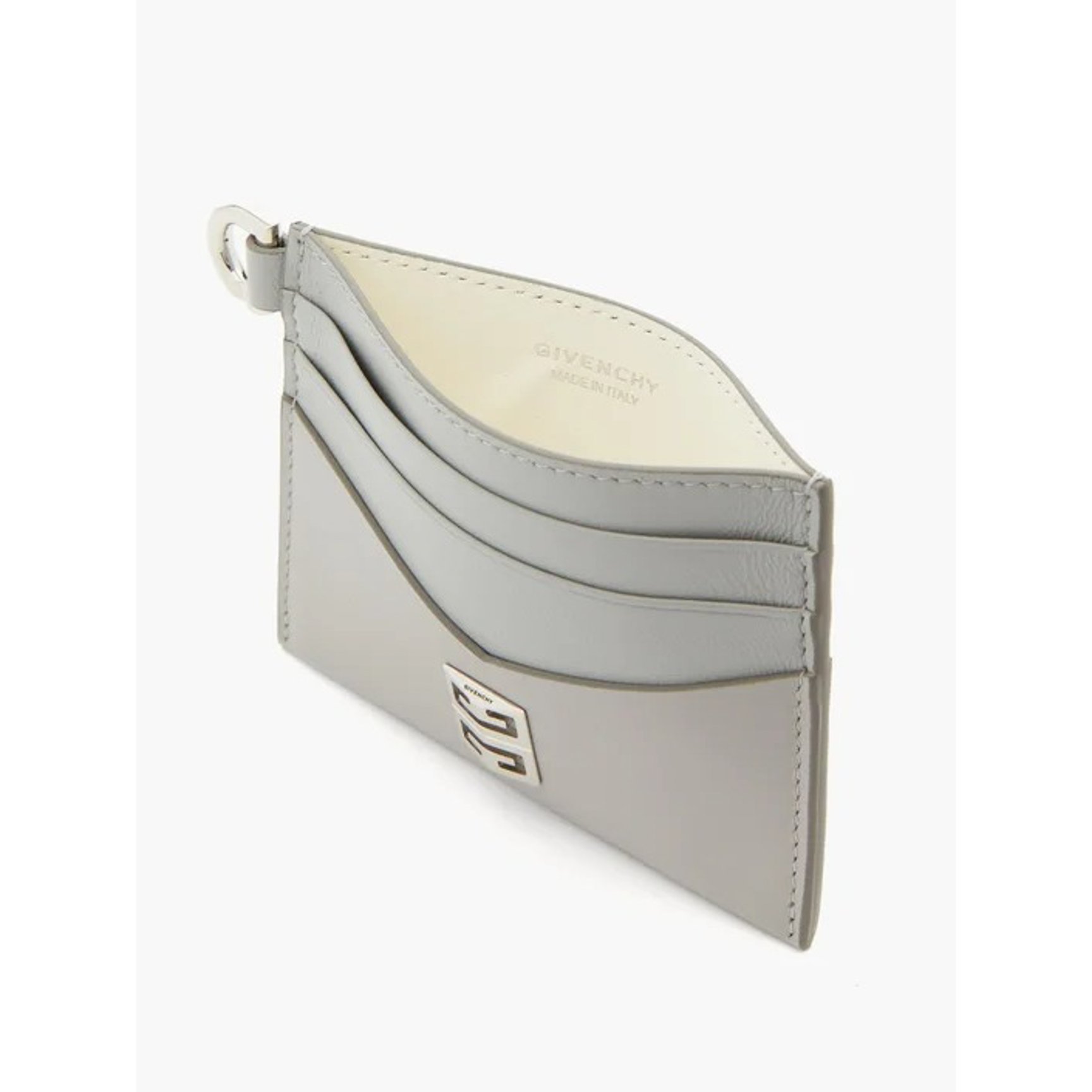 清楚なグレーに大人の余裕を感じる、「ジバンシィ(GIVENCHY)」のカードホルダー。シルバーの4Gプレートが静かに煌めき、エッジィなVカットが変化球のアクセントに。ストラップを付けることができる、Dカンもセットされています。