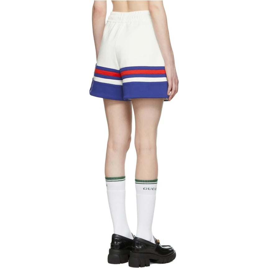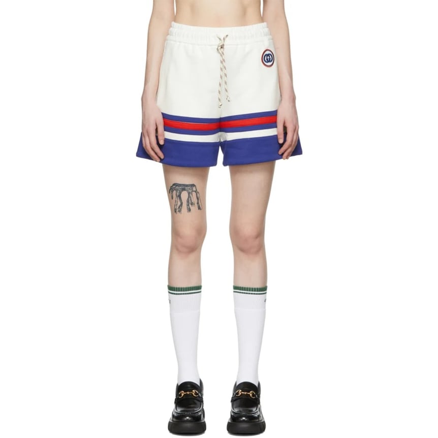 「グッチ(GUCCI)」のショートパンツは、シグネチャーのラインが入ったスポーティな印象。左ポケットにインターロッキングGパッチをあしらい、レトロなスポーツウェアの雰囲気をクラシックな「グッチ」のシンボルが融合したデザインです。