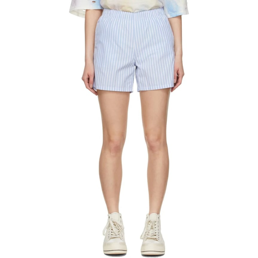 「アール サーティーン(R13)」のシグネチャーともなっている、伸縮性ウエストバンドFUUFFを施したボクサータイプのショートパンツ。ブルーとホワイトのストライプで、コーディネートに爽やかさを添えるアイテムです。