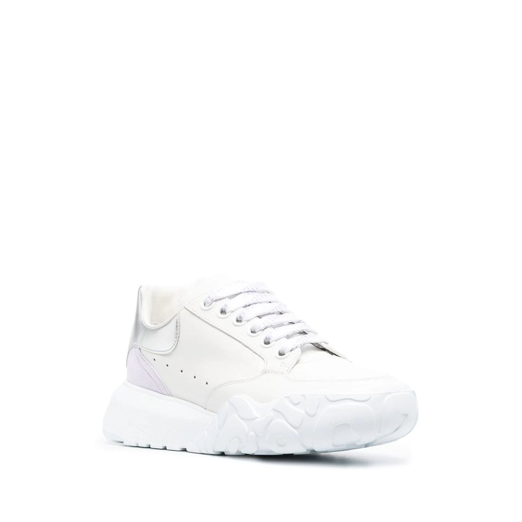 ひねりを効かせたチャンキーソールが、一味違うおしゃれを叶える「アレキサンダー?マックイーン(Alexander McQueen)」のスニーカー。ホワイトレザーのボディに輝くシルバーとパープルのアクセントカラーが、春に似合う爽やかさを演出。