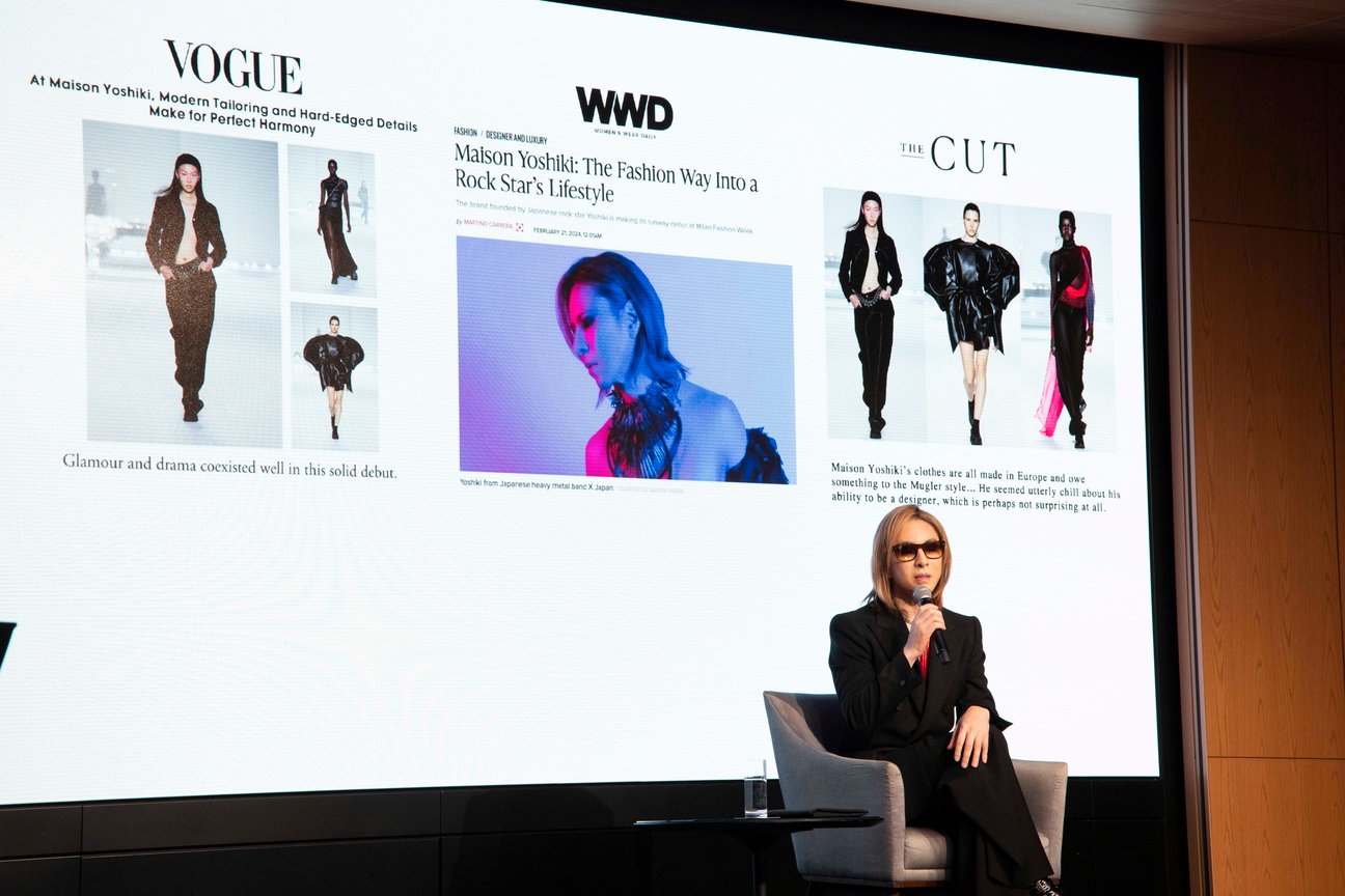 ヨシキ(YOSHIKI)がミラノから凱旋帰国し、自身がデザイナーを務めるハイファッションブランド「メゾン ヨシキ パリ(MAISON YOSHIKI Paris)」のデビューコレクションのフル映像を記者会見で初公開。ブランドの構想や藤原ヒロシとの楽曲制作、今後の展開についても明かした。