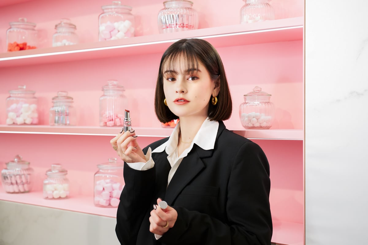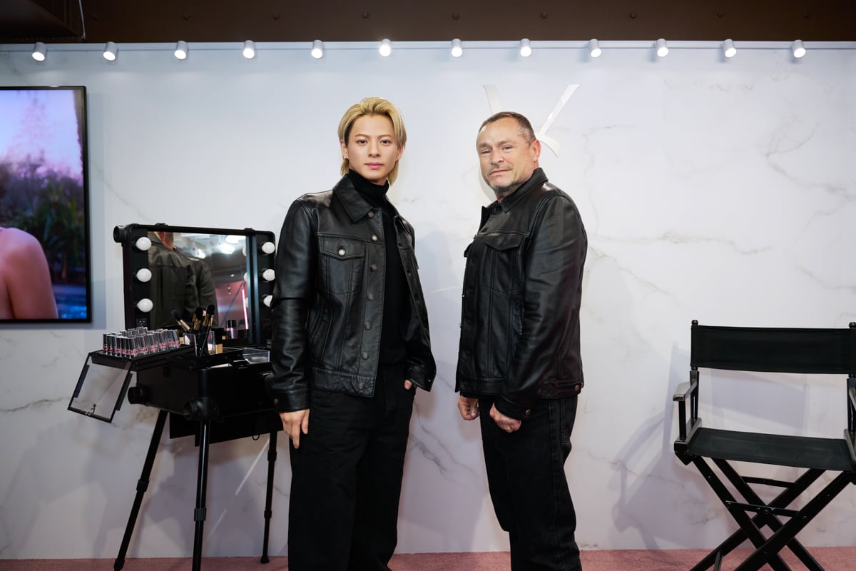 エントランスでゲストを出迎えた、アイコニックな大きなハートのモニュメントの前で、まずはフォトコールに応えた。会場内には、無限に広がるミラーがイマーシブな空間を演出する「インフィニティ ミラー ボックス」が登場。平野は、ロボットによるリップのショーケースや、クレーンゲーム、リップスティックのモチーフを駒に見立てたチェス、ポップでプレイフルなキャンディショップといった遊び心満載のコンテンツの数々を体験した。また、メイクアップ界の巨匠でYSL グローバル ビューティ ディレクターのトム?ペシューとの2ショットも実現した。