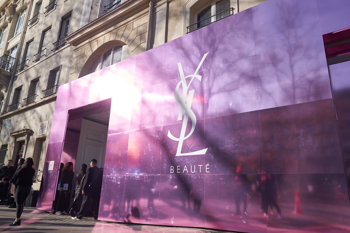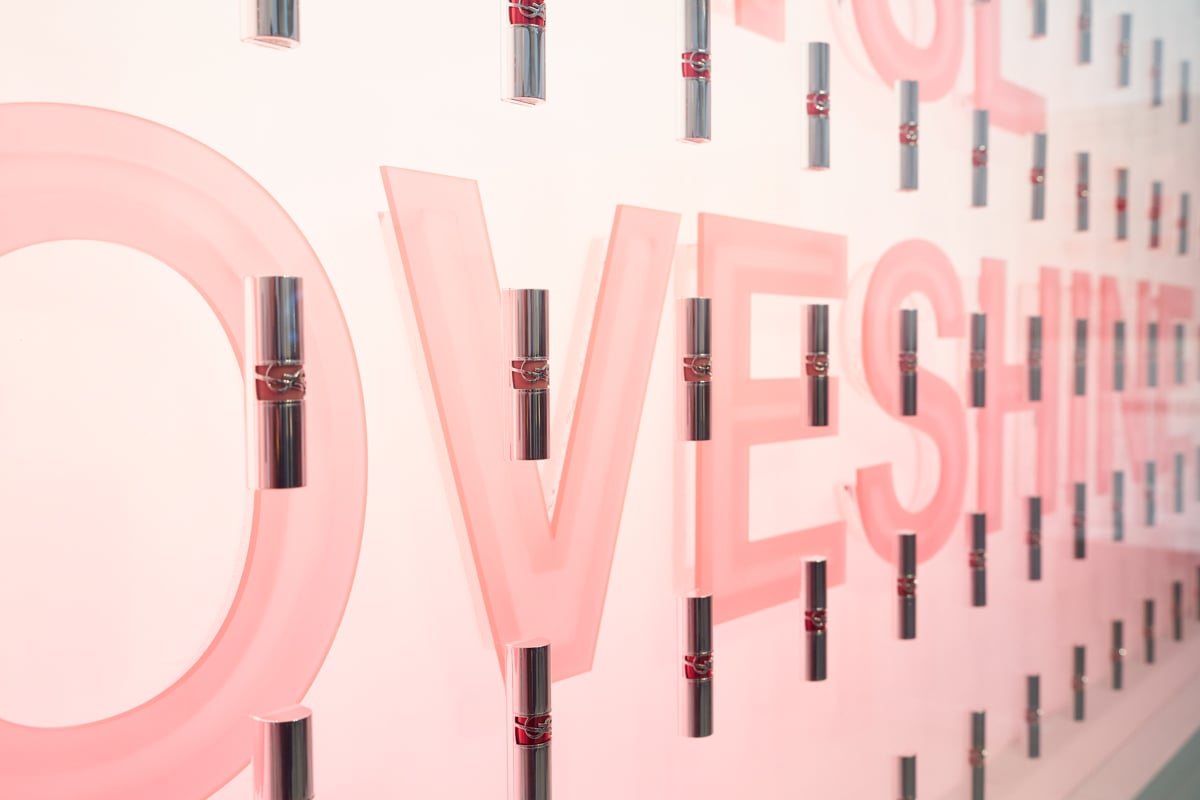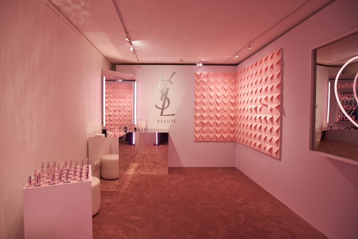 パリの中心地マレ地区。感度が高いZ世代が集まり、カルチャー?トレンドの発信地でもあるこのエリアに、「YSL LOVESHINE」を象徴する、艶めくミラーピンクの輝きに包まれたファサードが出現。