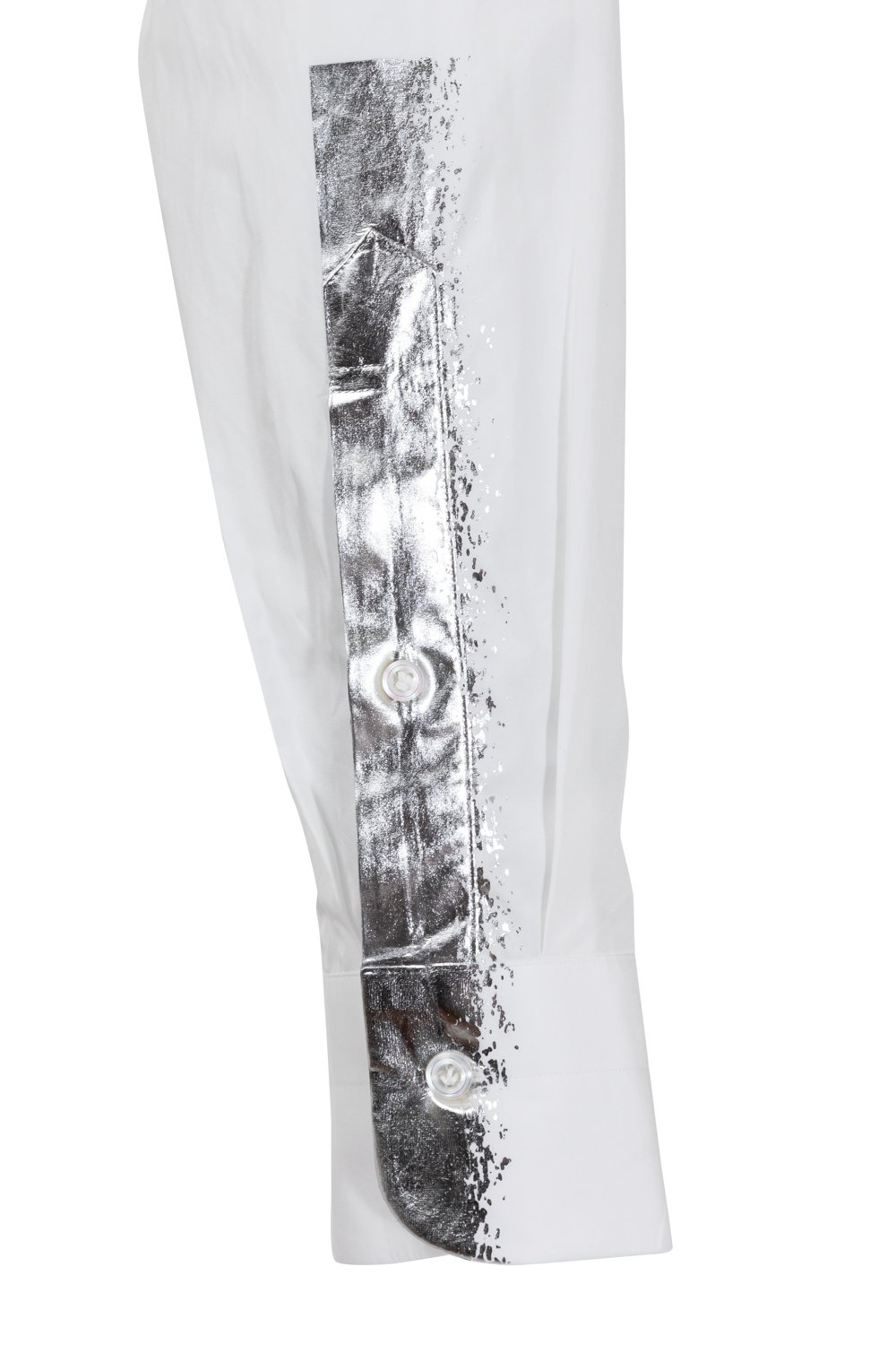 岡田:ハンドルームのアイテムをベースに、藤澤さんが1点ずつ箔加工を施しています。5型のうち、ブロードシャツとTシャツ以外は2021年春夏シーズンの新作アイテムをアレンジしています。シルエットを少し調整していて、イージーケアの素材を選びました。
