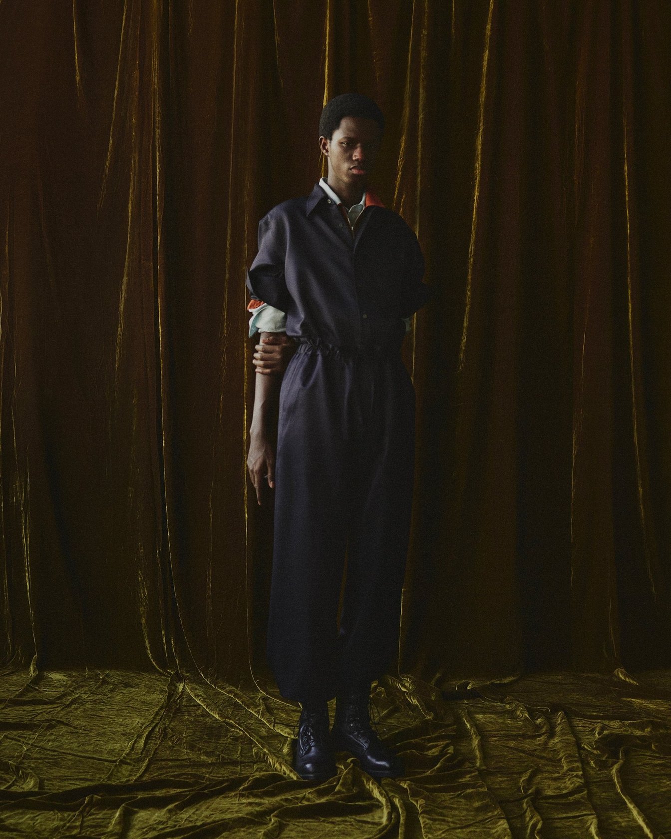 2025秋冬コレクションのテーマとして掲げたのは“Releasing Sensation”。人が美しいと感じる感覚を変容させ、物質や造形が持つ記憶やイメージを変換すること、そしてモノに宿る記憶と美しさを追求することも目的にコレクションを展開。生地には、クラッシュ加工を施したコットンベロアや揺らぎのあるシルクウールのカルゼ、薄く漉しボンディング加工されたレザーなど天然繊維を軸に、立体的なテクスチャーのナイロンコットンの二重織りなど軽やかなテキスタイルも披露。ブランドらしいこだわりの生地をベースに、クラシカルなデザインとモダンなエッセンスを織り交ぜたアイテムを展開している。
