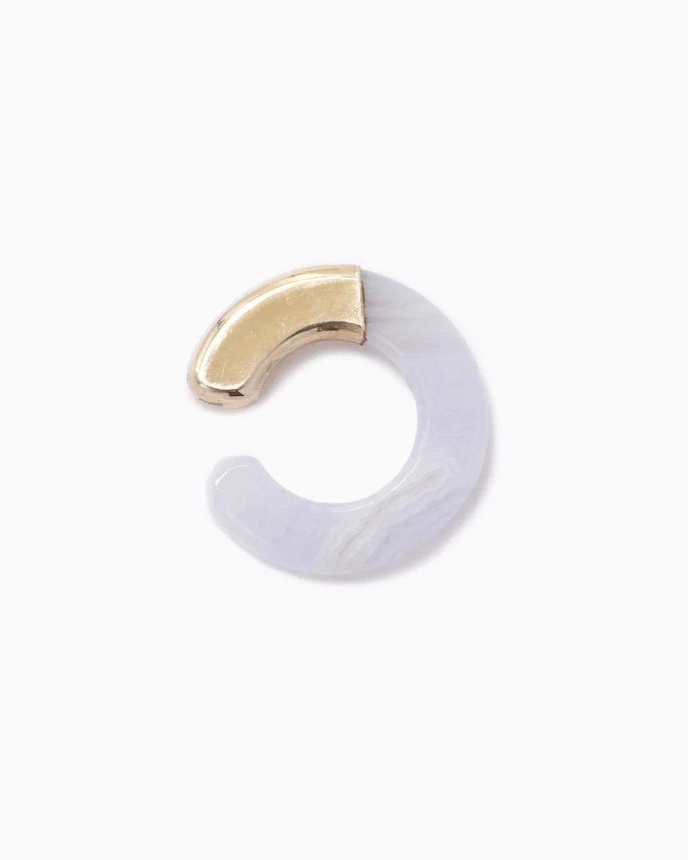 和菓子の浮島に着想した「ウキシマ(UKISHIMA)」シリーズもデビュー時から定番のアイテムシリーズ。そこから派生した空豆を模ったピアス「ウキシマ ソラマメ(UKISHIMA SORAMAME)」は程よい丸みのあるシルエットで、天然石を手作業で削りだし、石の半面に特殊加工のエレクトロフォーミングの技術を施して、ゴールドをコーティングしている。また、ユニセックスで人気を集めてきている同シリーズのイヤーカフ「ウキシマ イヤーカフ(UKISHIMA EARCUFF)」もブランドのアイコンアイテム。「天然石の柄に個体差があるので、一点物のような感覚で愛用できる。より愛着を持って使っていただけるのでは」とデザイナーの芦沢は解説している。