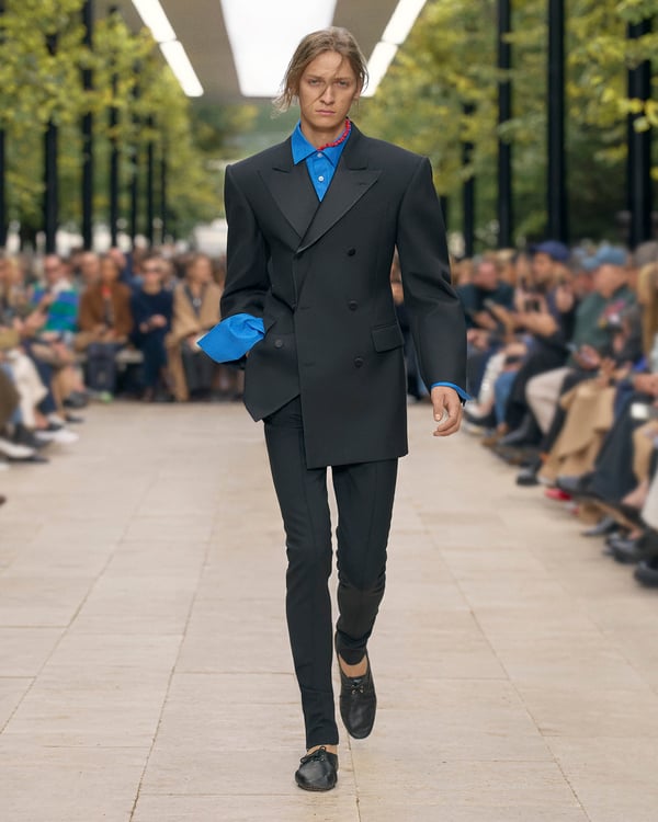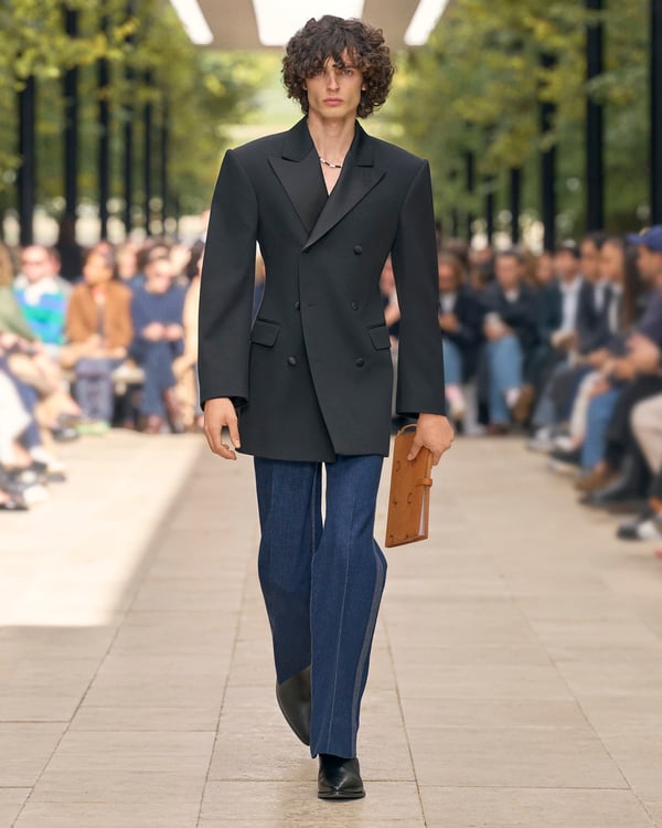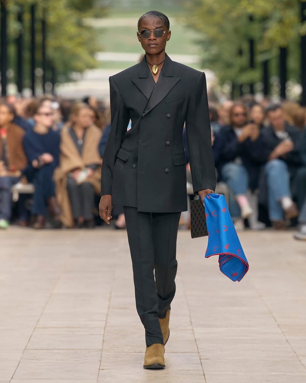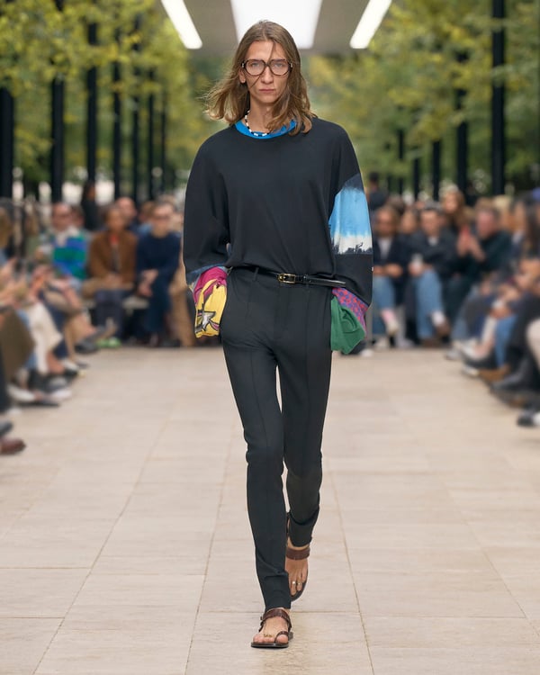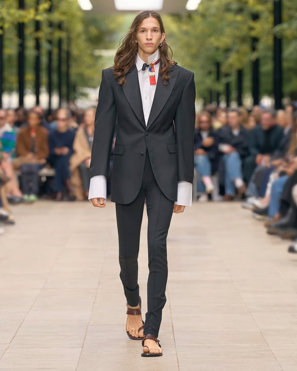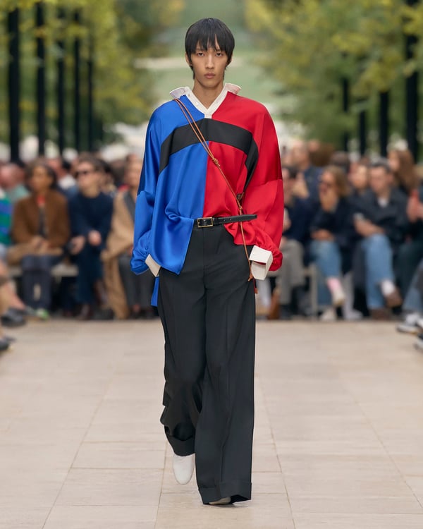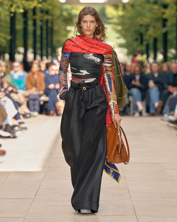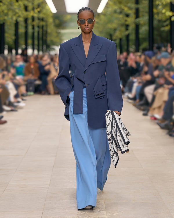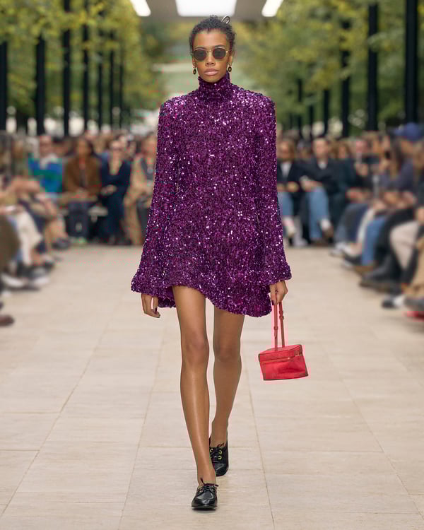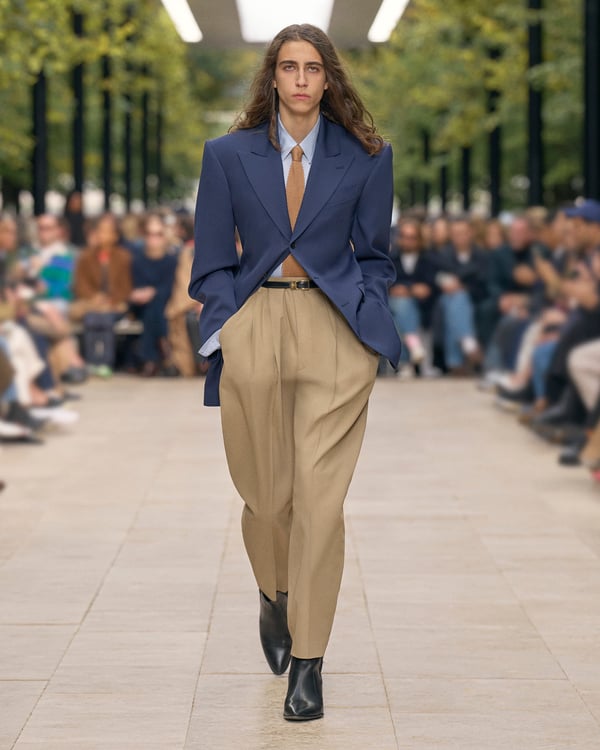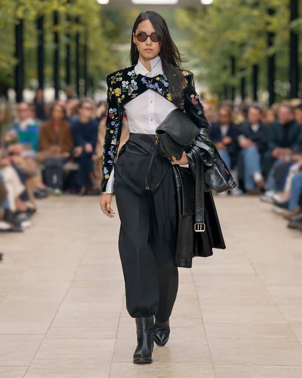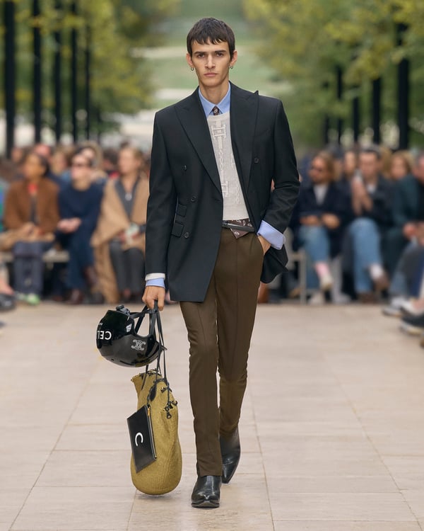 マイケル?ライダー(Michael Rider)による「セリーヌ(CELINE)」2026年サマーコレクションは、秋色に染まり始めた木々が揺れるパリ郊外のサン=クルー公園で披露された。前回7月に発表したデビューシーズンのスプリングコレクションからの“継続”とし、シルクスカーフや自転車のヘルメットなど、ブランドを象徴するアイテムが新たな解釈で登場。60年代風の花柄ミニドレスやショルダーパッドを効かせたジャケット、シルキーな素材のラグビーシャツなどが並び、鮮やかなスカーフをアクセントに都会的で洗練されたウェアラブルスタイルが披露された。