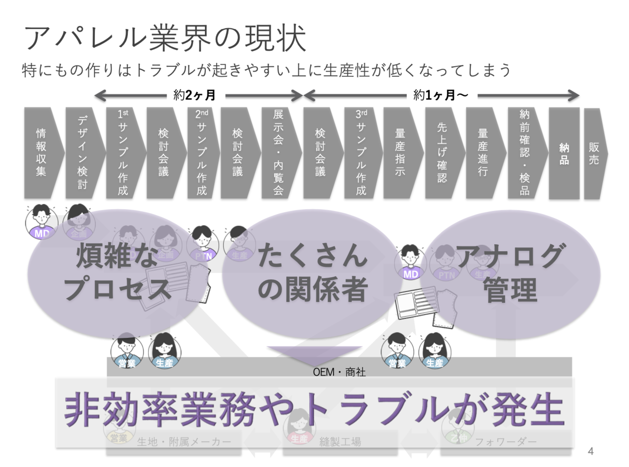 いまなおアナログな業務が多いアパレル業界。特に、アパレル生産流通の原点であるものづくりの現場に関してはテクノロジーの活用事例は少なく、他業界と比べても大きく遅れてると言わざるを得ない。