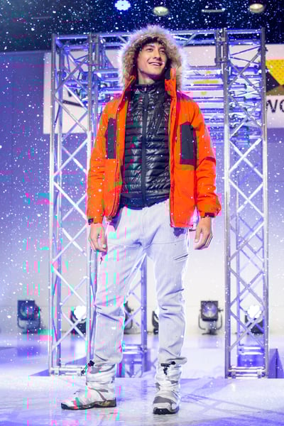 ランウェイ上で大雨、大風、大雪を再現した過酷ファッションショーでは、別売のバッテリー(4900円)の電源を入れることで首裏と腰に搭載した電熱シートが1分で最大50度まで暖まる「着るコタツ/WindCoreヒーターベスト」(3900円)の新作として、太腿に電熱シートを配し、裏地をフリースで仕上げた「ヒーターミドルパンツ」(3900円)や、取り外し可能なライナーに電熱シートを取り入れた2way仕様の「ヒーターデニムベスト」(5800円)などを披露。このほか、寒冷地の顧客から要望があったというケベックの新作ロング丈タイプ「防寒ブーツ 氷雪耐滑ケベックロング」(2900円)、強度と耐久性に優れたコーデュラ(CORDURA?)とスプラテックを採用したアウトドアシューズ「高耐久シューズ アクティブハイク」(1900円)などが登場した。