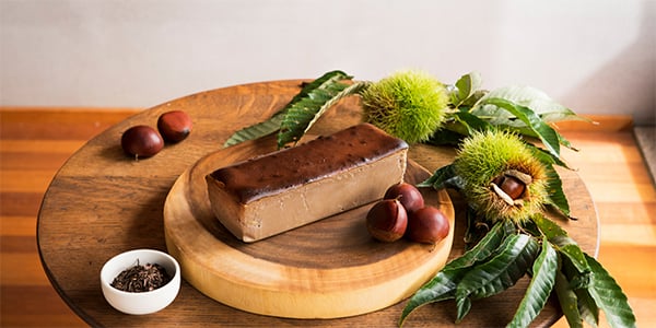 ラム酒で煮て最大限に香りと甘味をひき出した栗と、ほうじ茶の芳醇な香りのマリアージュは深まる秋にぴったり!