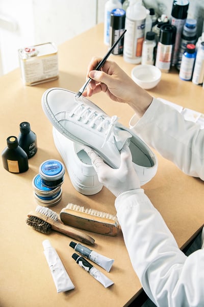 PSL?では、事前の診断からクリーニング&リペア、配送まですべてオンラインで対応する。公式サイトやLINE、インスタグラムのいずれかから問い合わせた後、オンライン上でカウンセリング(診断費3000円)を受けることが可能で、診断内容に納得した場合はシューズをPSL?に発送。PSL?ではスニーカーを受け取り次第、現物を確認し、状態に応じてクリーニングやソール?アッパーの補修、ブラッシング、リカラーなどのシューケアを施すという。