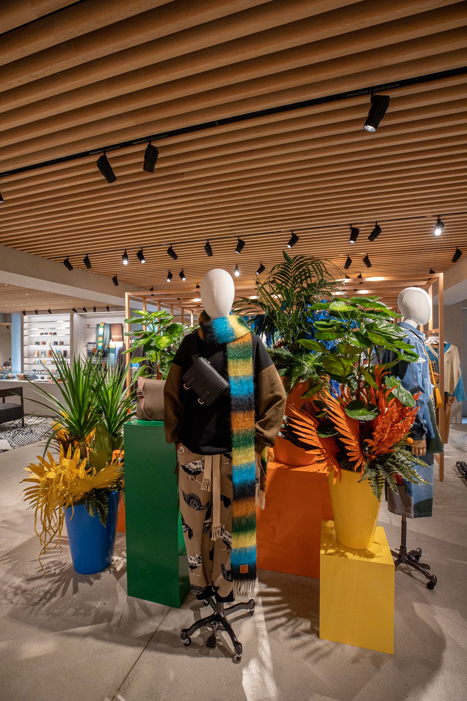 1周年を記念して店内には、アメリカ人アーティストのケン?プライス(Ken?Price)とコラボレーションしたクリスマスコレクションをフルラインナップで展開。コレクションに落とし込んだヤシの木やロサンゼルスの街並みなどのモチーフを反映したスペースでは、シルクシャツやスウェット、Tシャツ、ウォッシュドデニムパンツ、バッグなどが並ぶ。また、ホリデーシーズンにあわせて、新色のスカーフや財布、カードホルダーなどを豊富にラインナップし、11月20日から4日間はアイコンバッグの「ハンモックバッグ」を多数揃えたポップアップスペース「ハンモック ルーム」の展開を予定している。