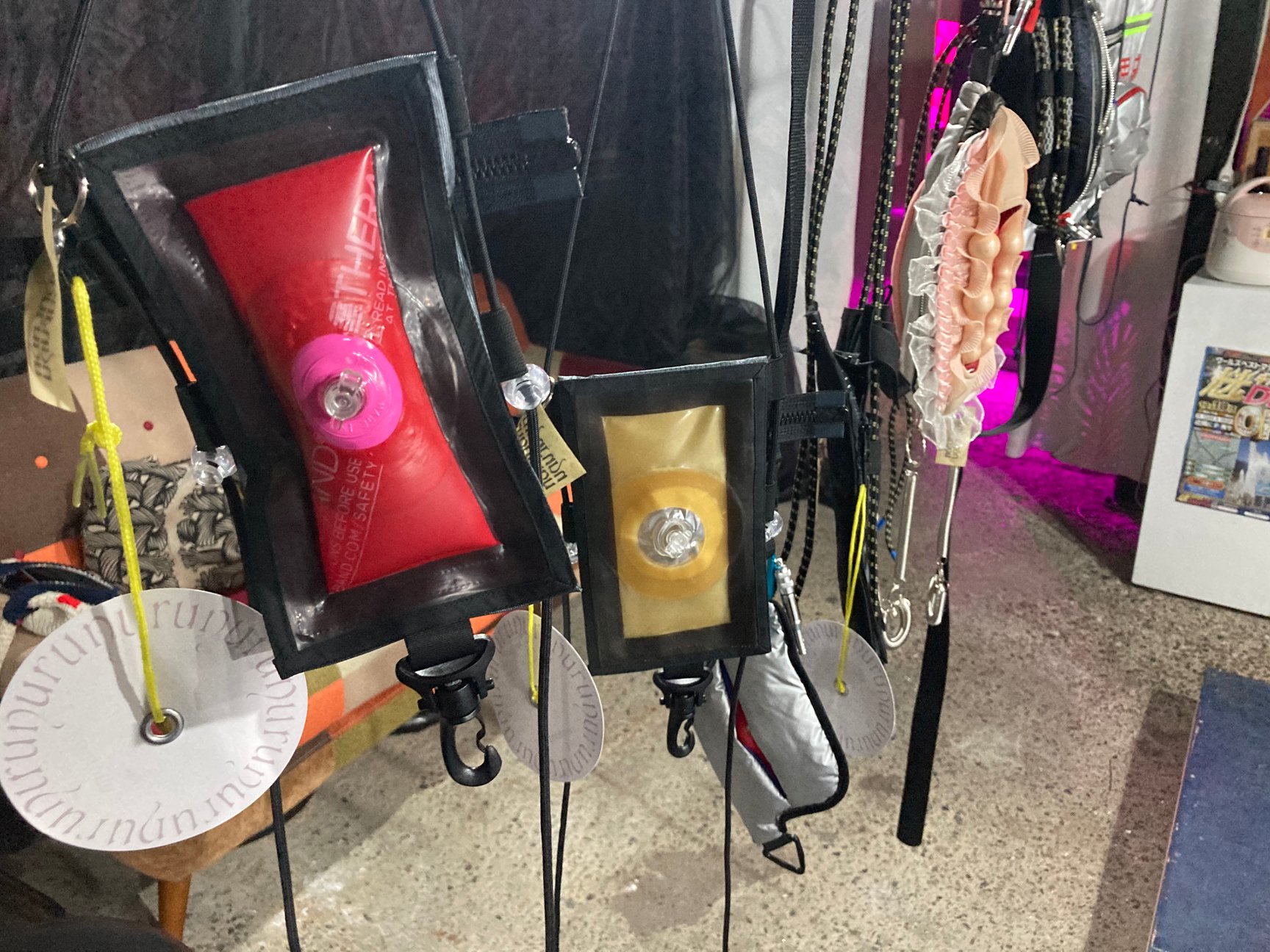 川邊靖芳はドレスメーカー学院卒業。ホームレスを経験した後、「意味を軽くする事」をコンセプトに掲げたファッションブランド「ルヌルヌ」を立ち上げ、視覚表現を通じて宗教やヒエラルキー、ジェンダーなどの"境界線"を問う作品を発表している。ルヌルヌのアイテムは、異素材の断片を組み合わせることで生まれる偶然性のあるパターンと立体的な造型が特徴で、「できるだけ手を加えず、フラットな状態であること」を意識しているという。近年では身体や性器を彷彿とさせる形状のバッグや服を展開。併せてアイテムにまつわる写真や映像、インスタレーションなどの制作も行っている。
