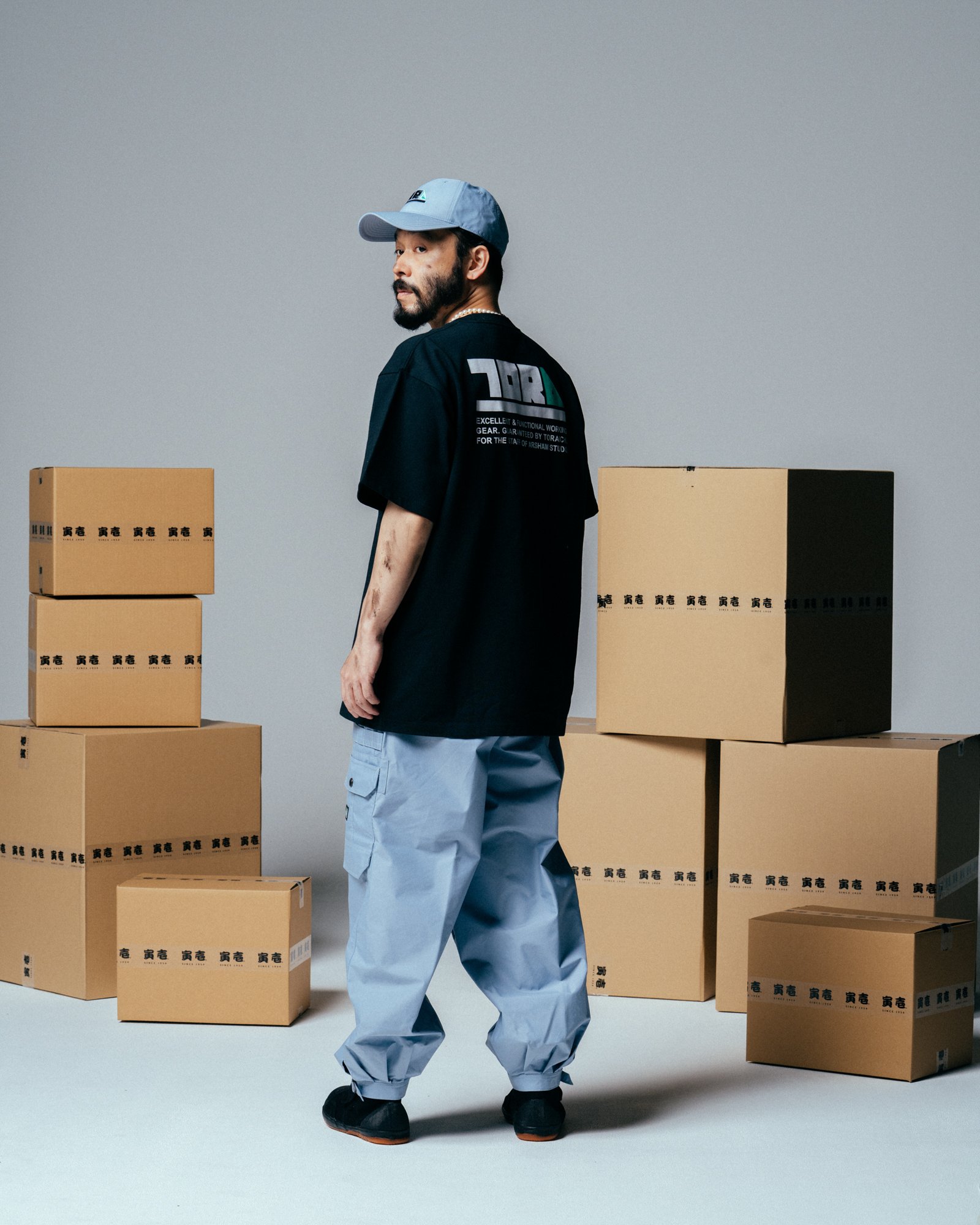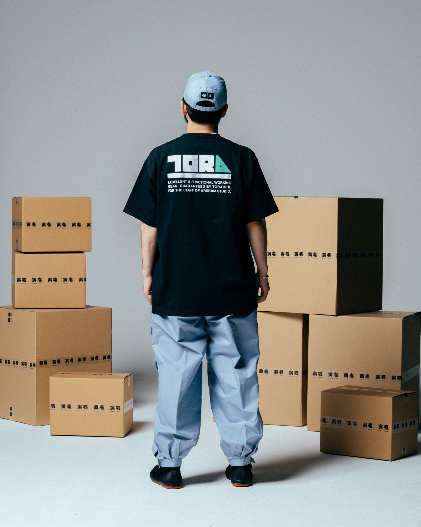 THE?MODERN LINEでは、寅壱の「TORA」ロゴとピクトアイコンを組み合わせたアーシャムによるロゴのデザインを展開。Tシャツ(1万2000円)やマスクフーディー(1万8000円)、キャップ(6900円)、ターポリンバッグ(1万8000円/すべて税別)をラインナップしている。