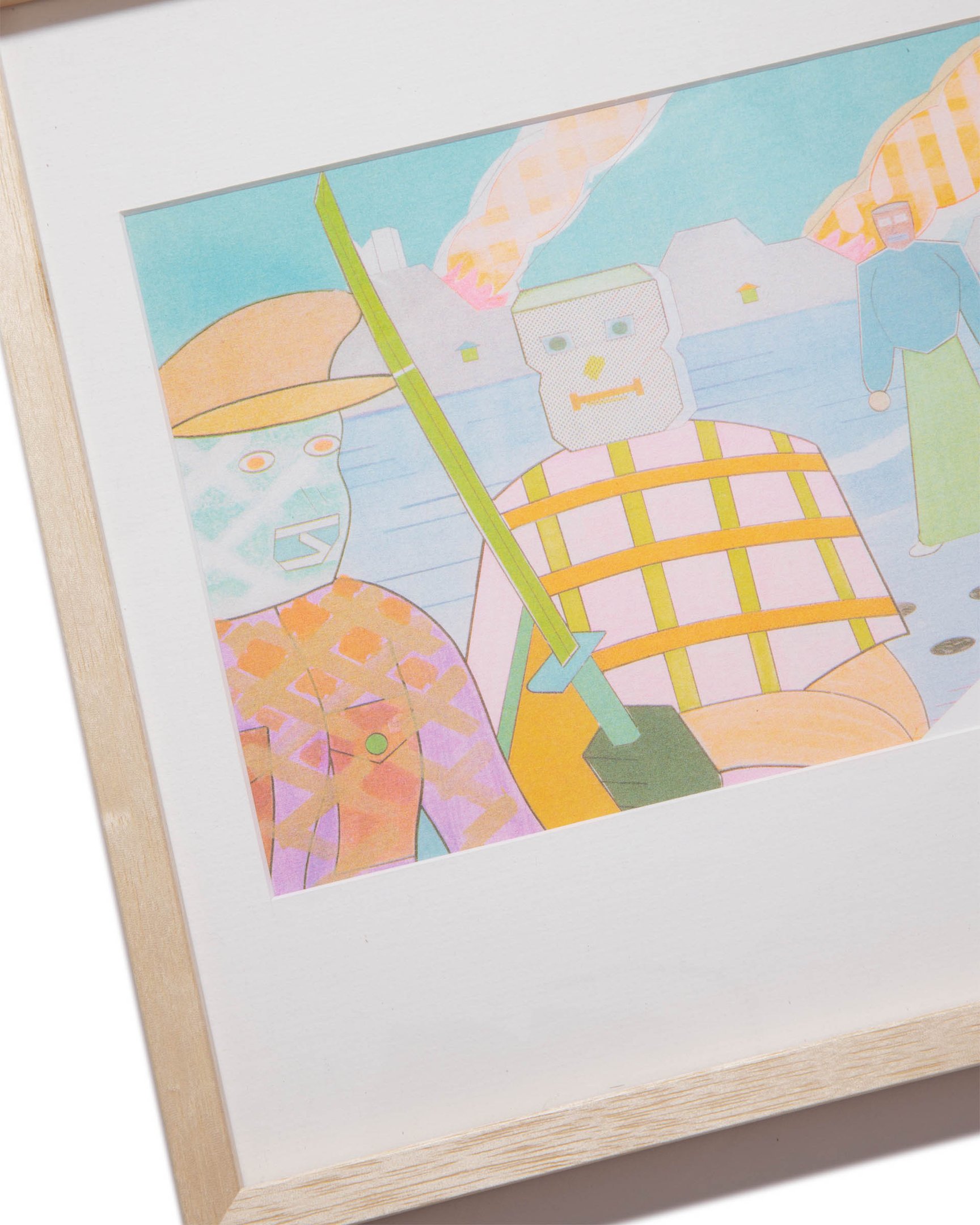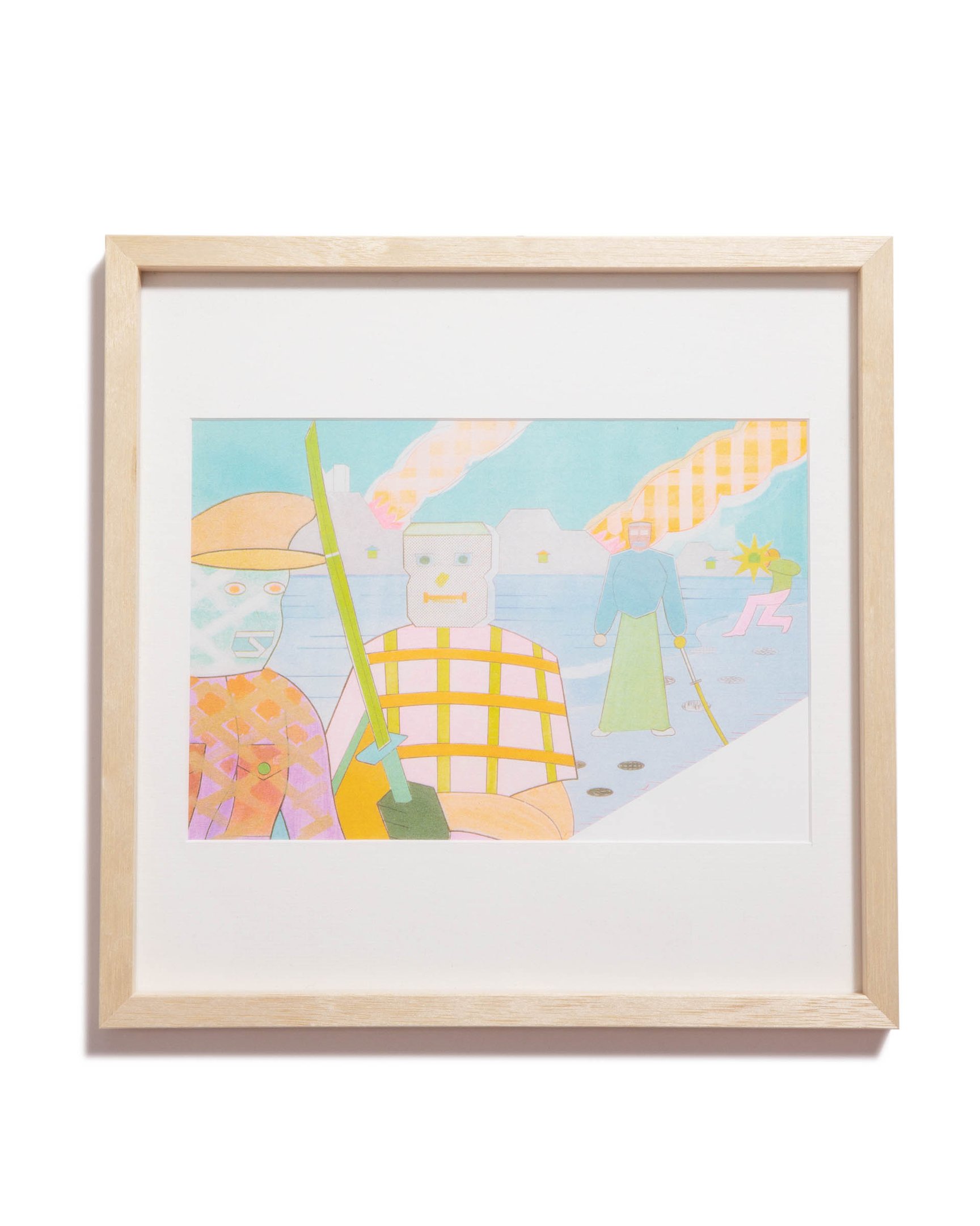 犬山:買っておきながらなんですが、私もわかりません(笑)。1人はポーズをとって写真を撮っていて、もう1人は竹刀か剣のような物を持っていて、警官のような人を斬ろうとしている...? でもこの色合いといい、何を考えているか分からない表情といい、やっぱり横山さんにしか作れない世界観だと思います。