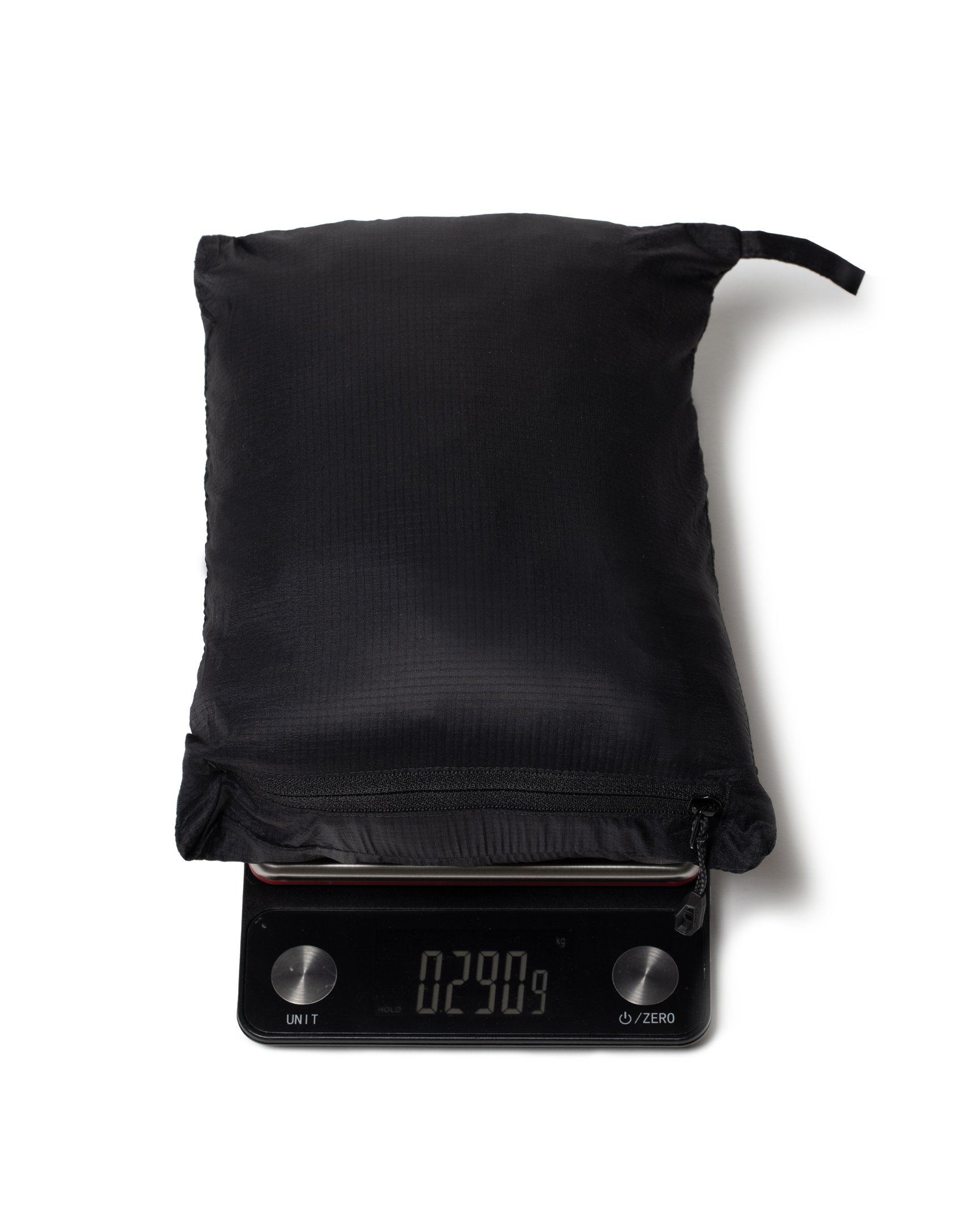 庵原:そうですね、ヨーロッパのアウトドアブランドは細身に作っているのが多いですよね。マムートもスイスなので、シンプルでスッキリしたデザインになってます。ライニングは半透明の超軽量素材、外側は東レのリップストップ素材とある程度の撥水性だけ残してとにかく重さを削ぎ落としたスペック。そのため自ずとデザインも決まってくるんだろうなと思いました。そういう思い切りの良さが、アウトドアでは大切なんですよね。