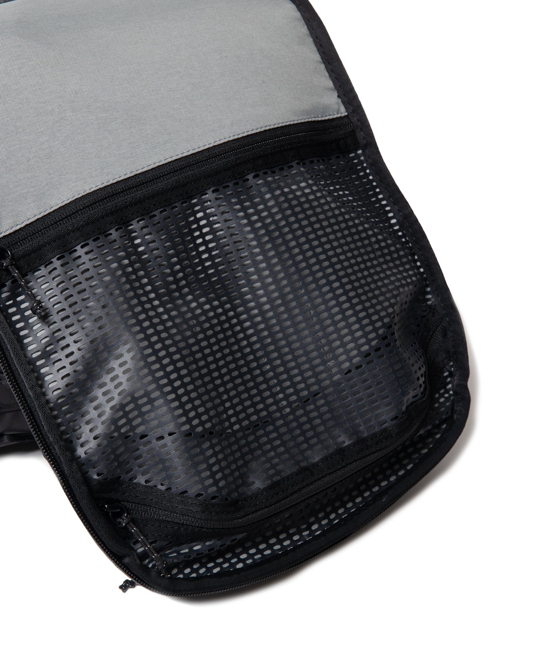 庵原:アウトドア系が多かったですね。ただ、街で使うにはやっぱり用途が違うなって思いました。アウトドア系は一度背負うと長時間背負った状態を前提に作ってるんだなって思いました。確かに密着度や重さの分散とかはスゴいんですが。街だと背負ってるのって歩いてる時ぐらいじゃないですか?電車やエレベーターに乗ると手で持ったりするシーンが多いので、クイックに背負ったり提げたり掴んだりできるのが重要だなって改めて思いました。