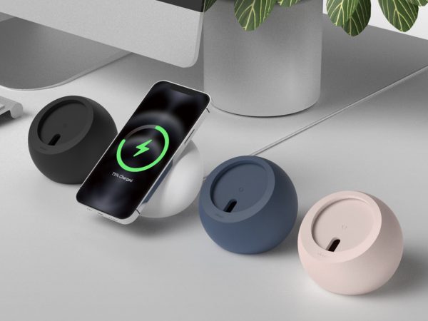 もう1つのMS2は、ベース部分が球形になっていて、サイズ的にもAppleのスマートスピーカーHomePod miniを思わせる。MS1同様、一部が斜めにカットアウトされていて、手軽にマグネットでiPhoneを固定できる。