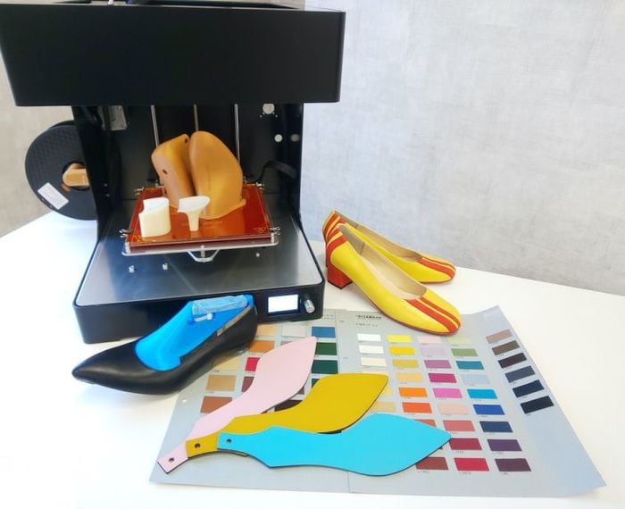 客は同社のオフィスで3D採寸し、データを3Dプリンターに読ませて木型を作る。6台のプリンターを駆使してパーツごとに作成するが、「4台使っても7~8時間はかかる」という。木型を元に、2人いる熟練の縫製士が最終製品にまで仕上げる。爪先の形や履き口、ヒールの形状?高さに加え、49色ある革を掛け合わせると6400万通りの靴作りが可能になる。納期は約1カ月だ。