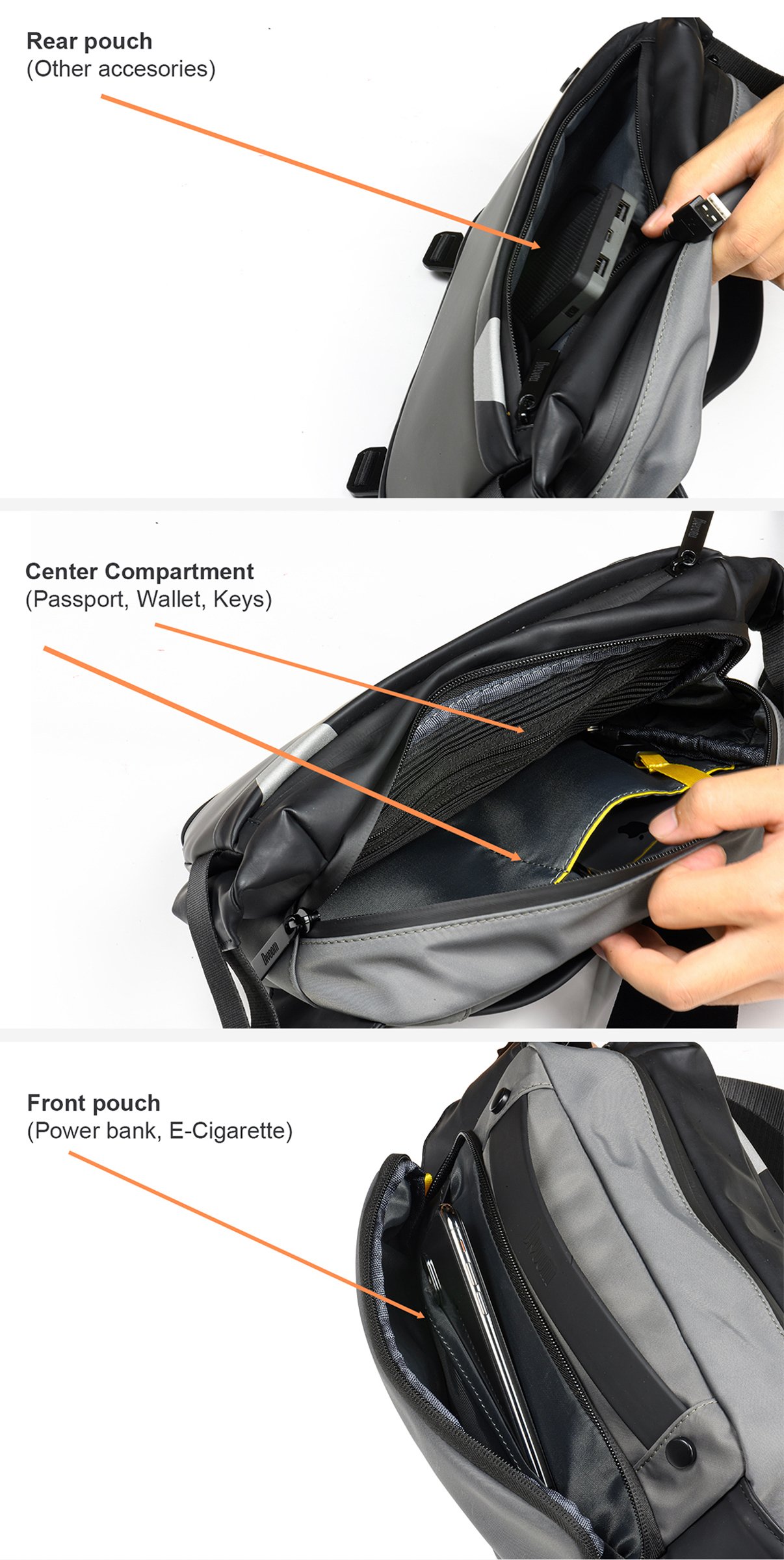 バッテリーを搭載するため、急な雨などで水が入ることを気にする人もいると思うが、撥水性能と止水ファスナーにより、その心配はないとのこと。
