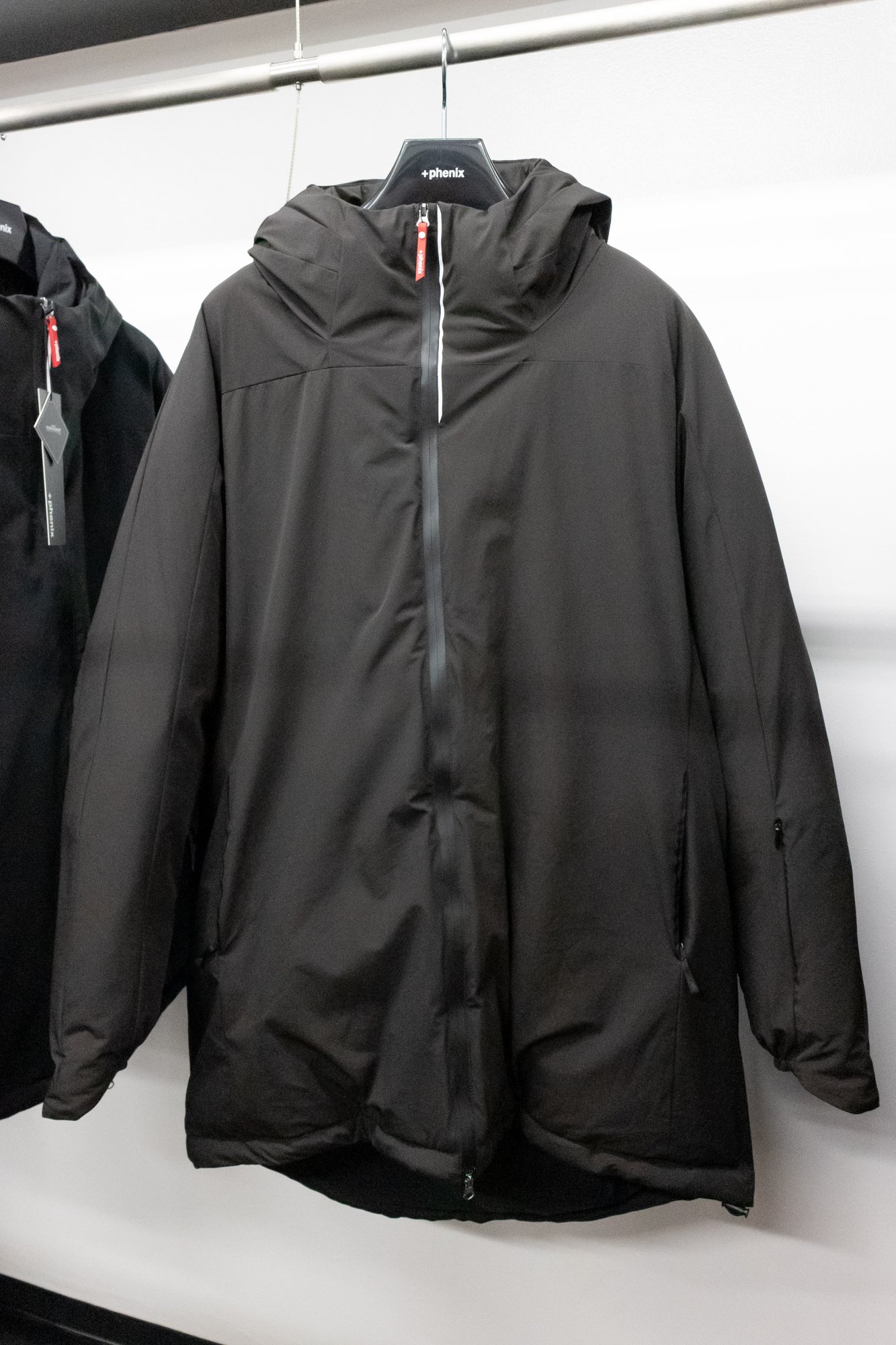 プラス フェニックスでは、フェニックスのDNAであるスキーテイストを派生させ、テクニカルな素材や機能を組み合わせることで雪山や登山、キャンプをはじめ、都会のビジネスシーンにも対応するアイテムを製作。サステナブルな機能素材を軸にスキーウェアのデザインを落とし込み、様々なシチュエーションでの着用を想定したハイラインと、安価な料金設定で機能性とデザイン性の両立を実現させたパフォーマンス要素が強いミドルラインの2ラインを展開する。ファーストシーズンはシフォンの企画チームによるデザインに、アクセントカラーなどの一部でニコラの意見を取り入れ、2ラインで約60型のアイテムを製作した。