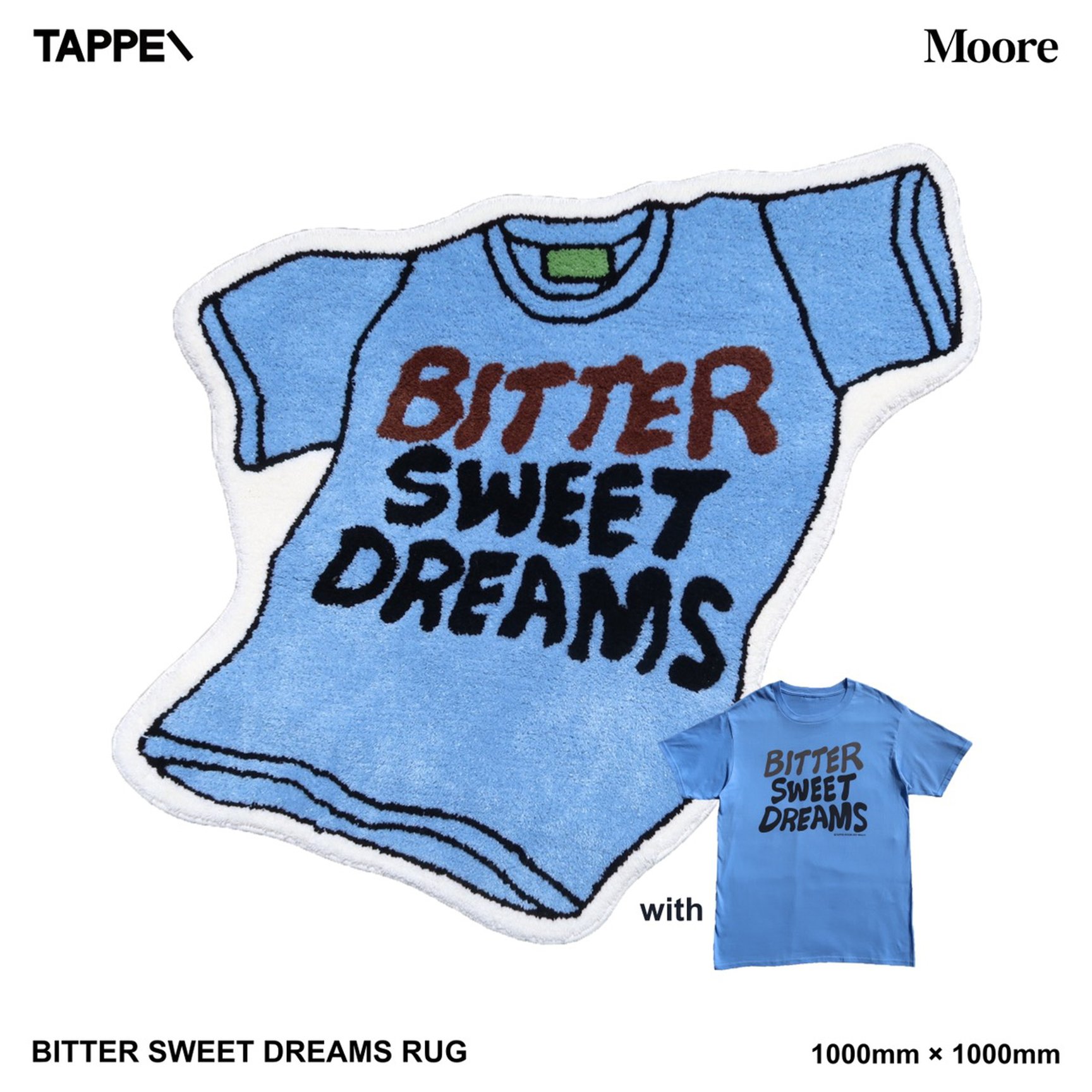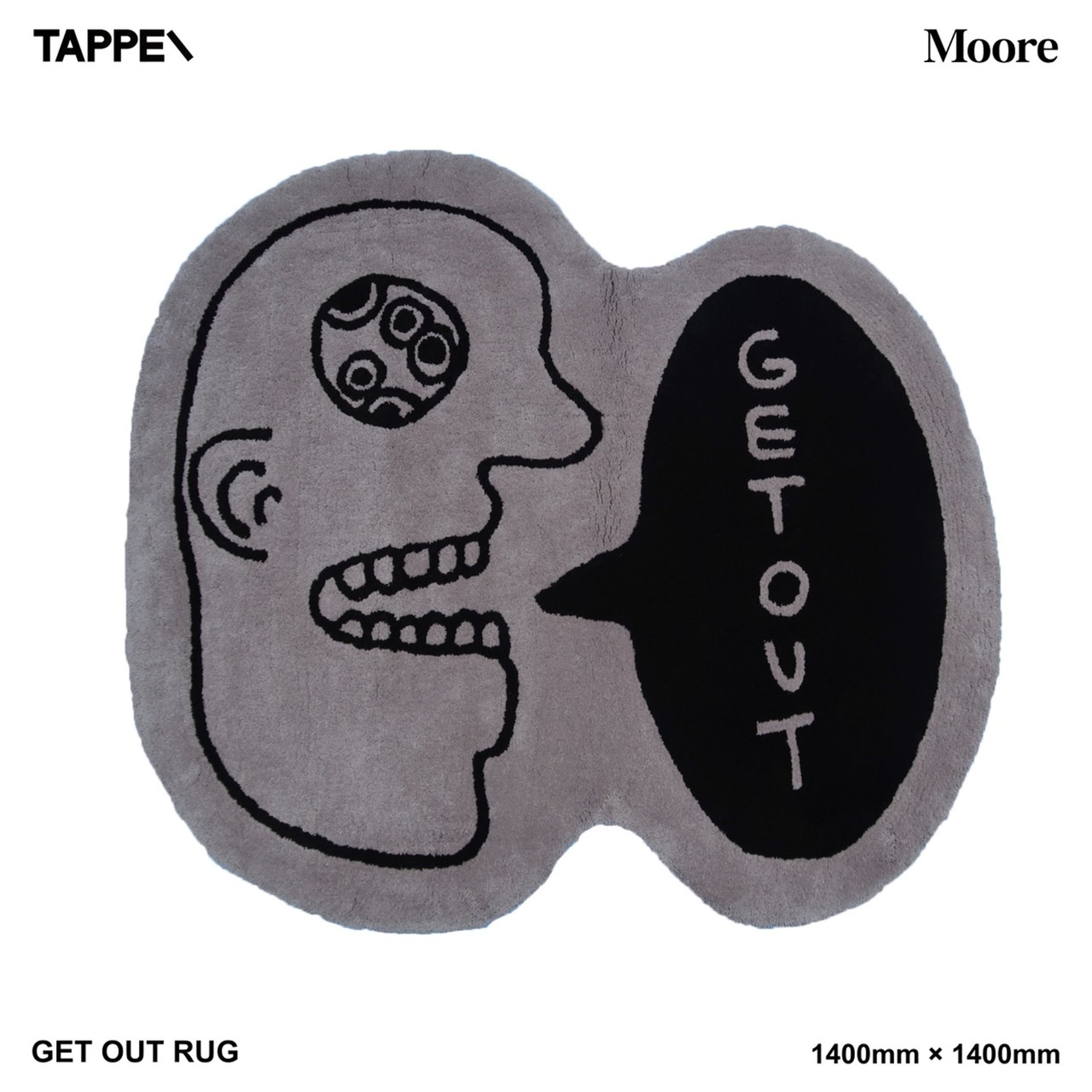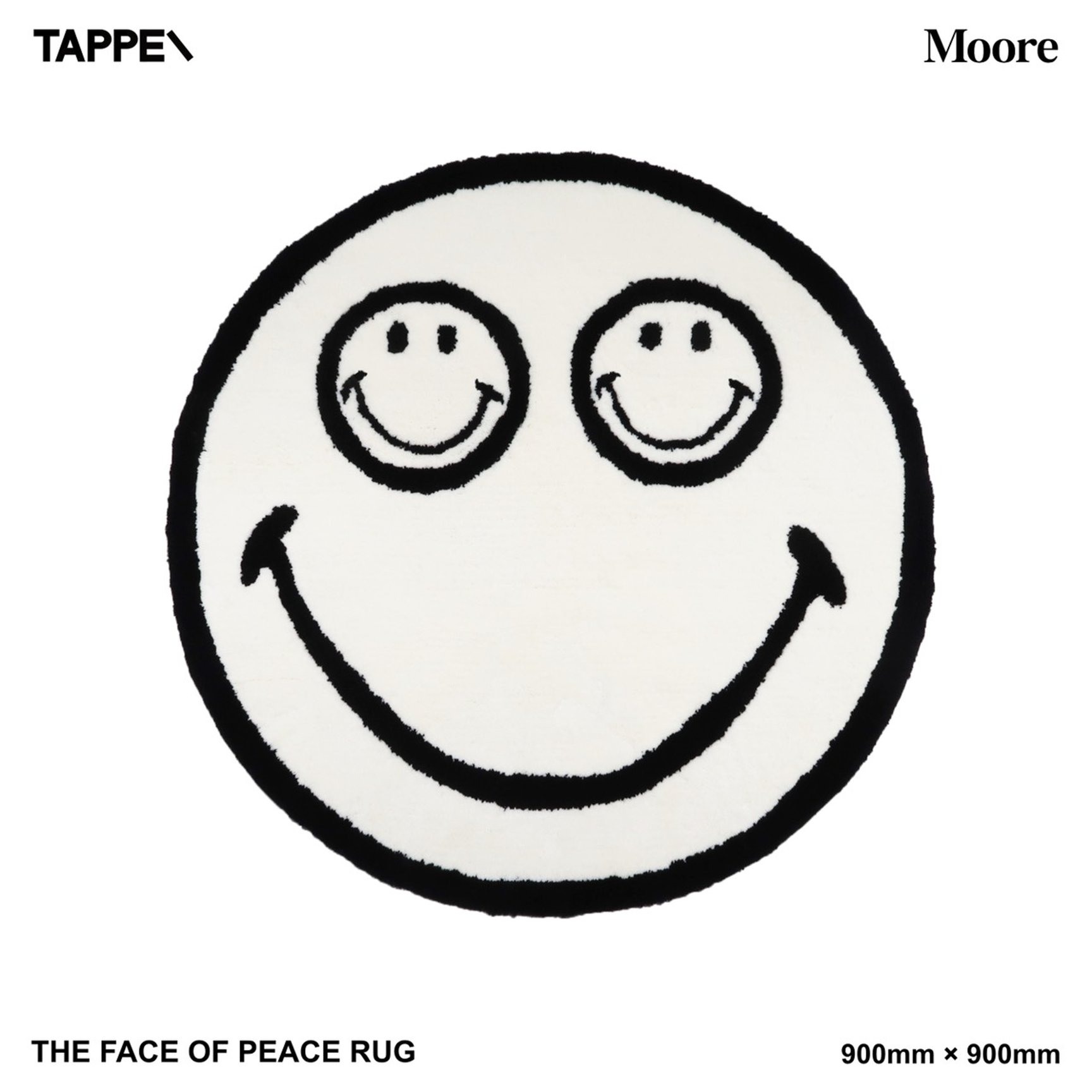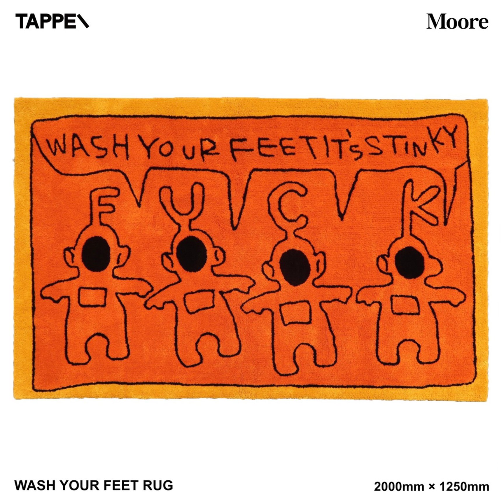 コラボラグは、全て日本製で職人による手作業で製作。TAPPEIのグラフィックを落とし込み、サルバドール?ダリ(Salvador Dali)の作品「戦争の顔(the face of war)」をモチーフにしたスマイルマークが特徴の「THE FACE OF PEACE RUG」(1万9800円)、脱ぎ捨てたTシャツの形をイメージし、同デザインのTシャツが付属する「BITTER SWEET DREAMS RUG」(2万9700円)、「GET OUT」の吹き出しをデザインに取り入れた「GET OUT RUG」(4万9500円)、「WASH YOUR FEET IT`S STINKY(臭い足を洗って)」という皮肉を込めたメッセージをあしらった「WASH YOUR FEET RUG」(6万6000円/すべて税込)の4型を展開する。商品の発送は8月末から9月中旬頃から順次行われる。