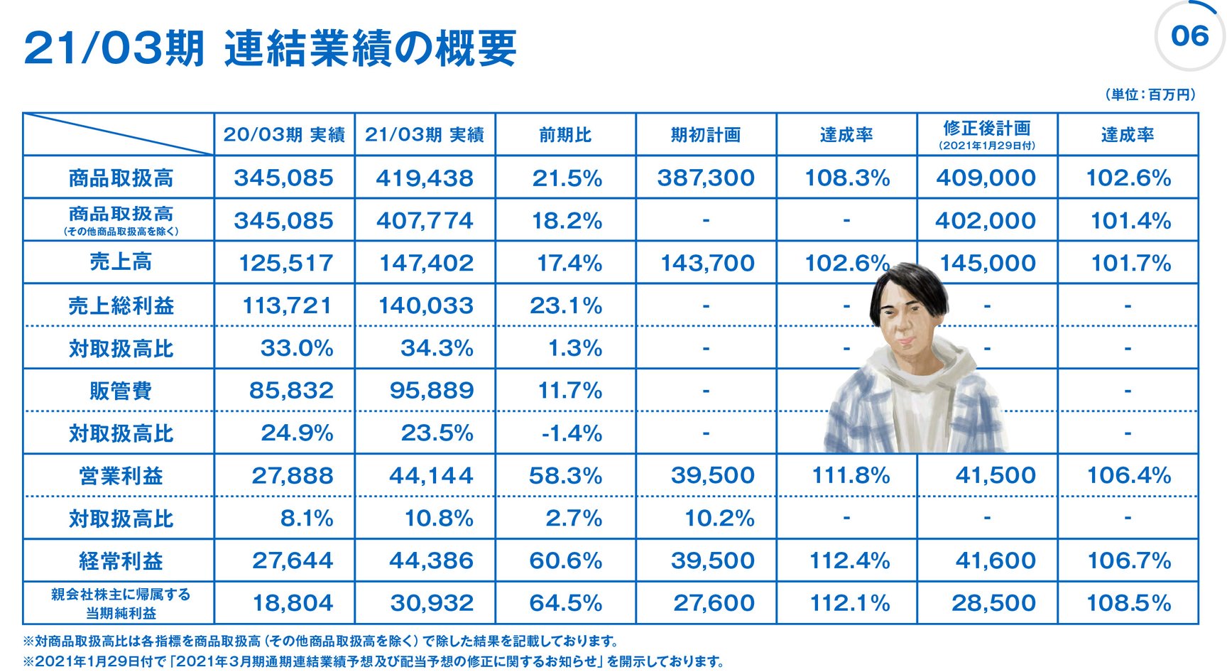 ZOZOが2022年3月期第1四半期の決算を発表し、増収増益を達成した。新型コロナウイルス感染拡大に伴うデジタルシフトで急成長した昨年の反動を感じさせない好決算が評価された一方で、漫画が掲載された決算説明会資料のデザインにも注目が集まった。