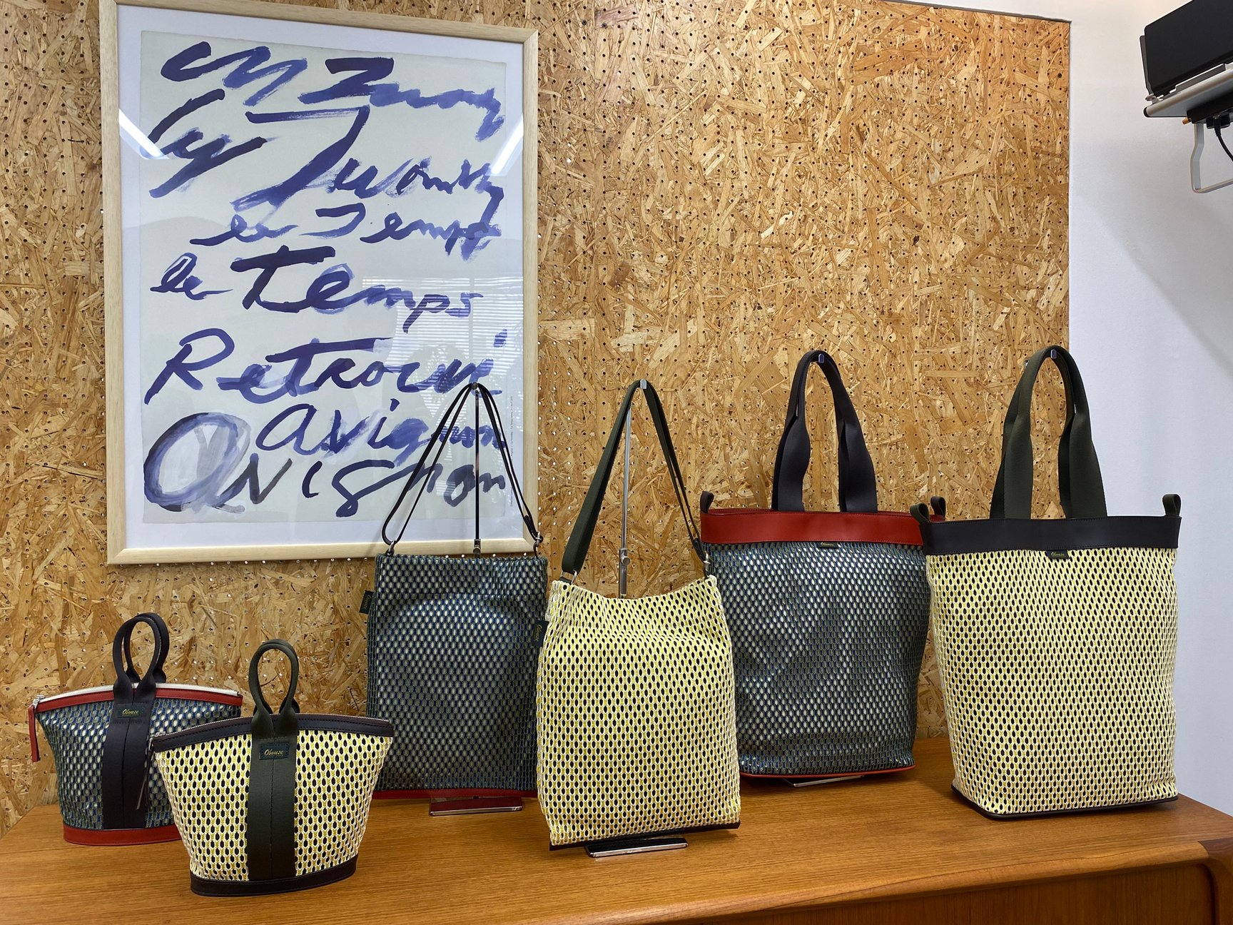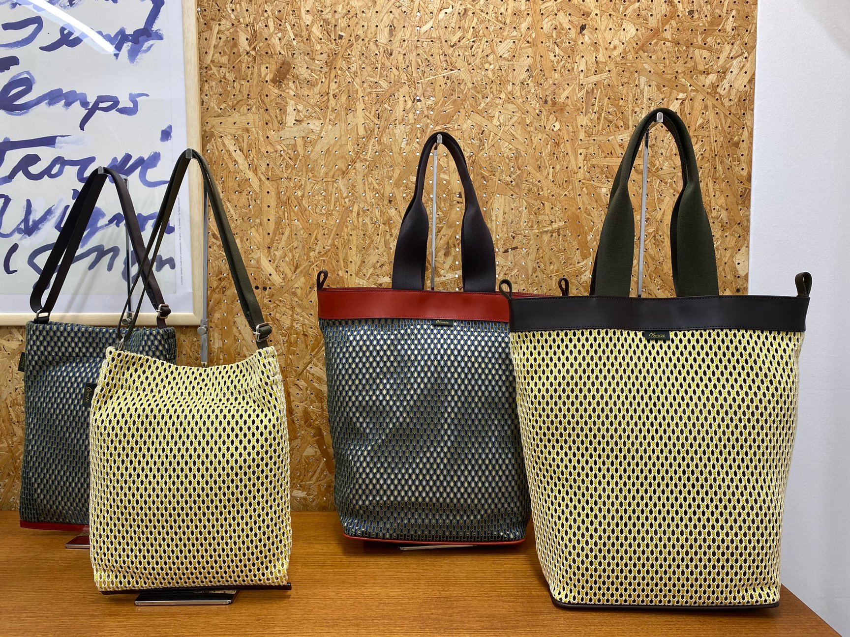 デビューコレクションでは、全3カテゴリーのバッグをラインナップする。公式インスタグラム開設時のヴィジュアルに使用されたバッグには、エアコンのフィルターや農業用の網などインダストリアルなアイテムに使われる、経編構造を用いたオリジナル素材「CORE NET」を採用。ナイロンを軸に綿糸を編み込んだもので、配色は昔の漁網から着想を得たカラフルなデザインに仕上げた。価格はポーチバッグが2万7720円で、Mサイズのトートバッグが2万2770円、Lサイズが3万7400円。