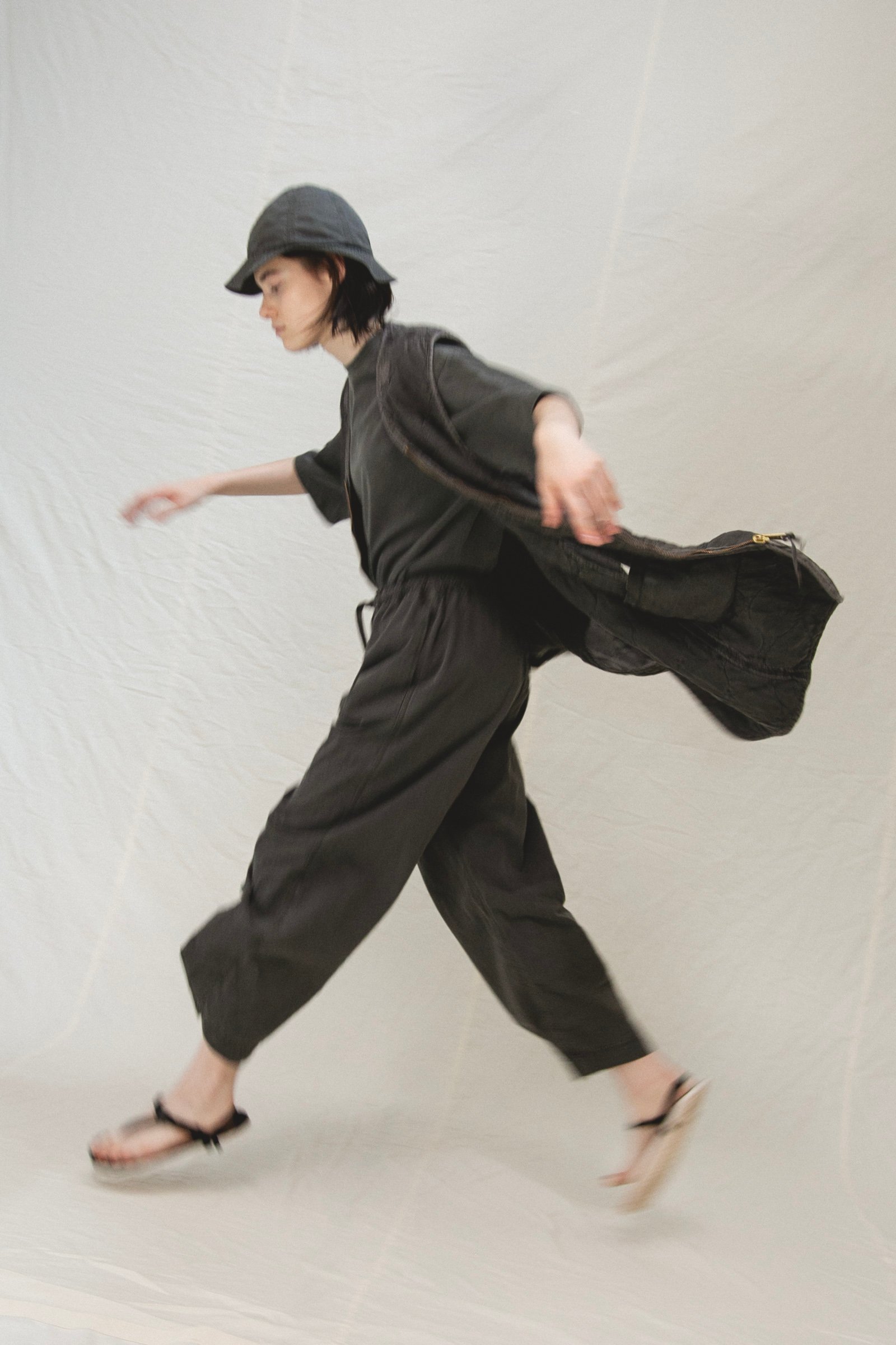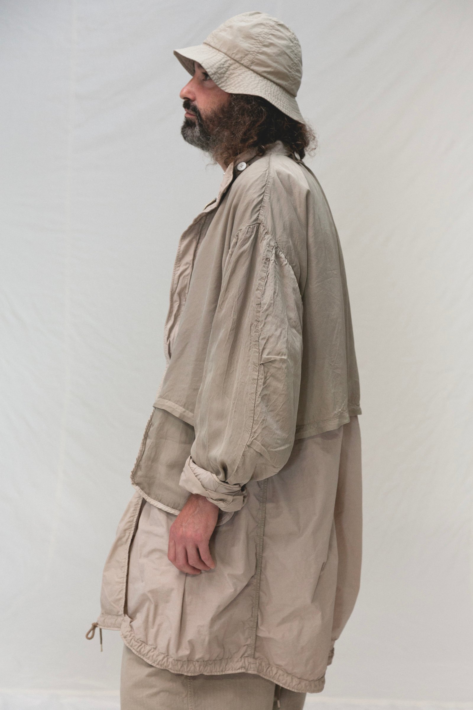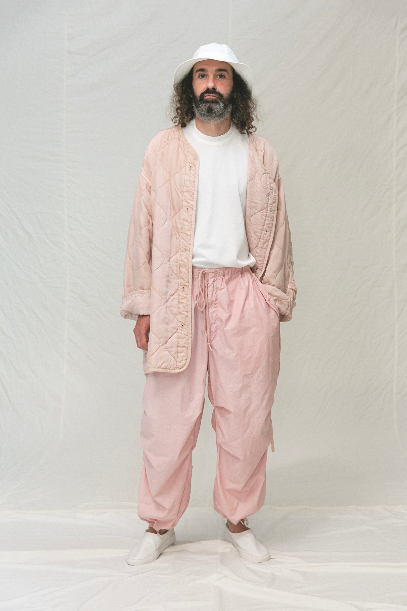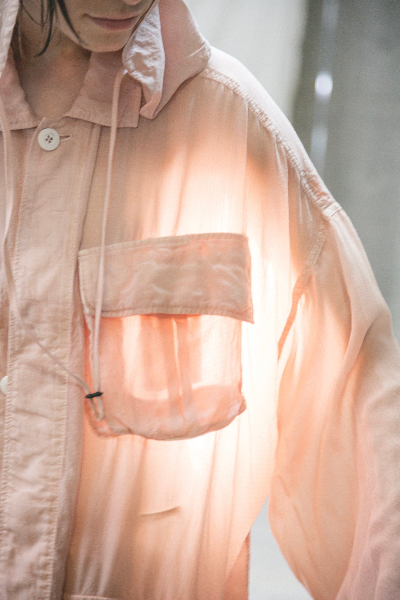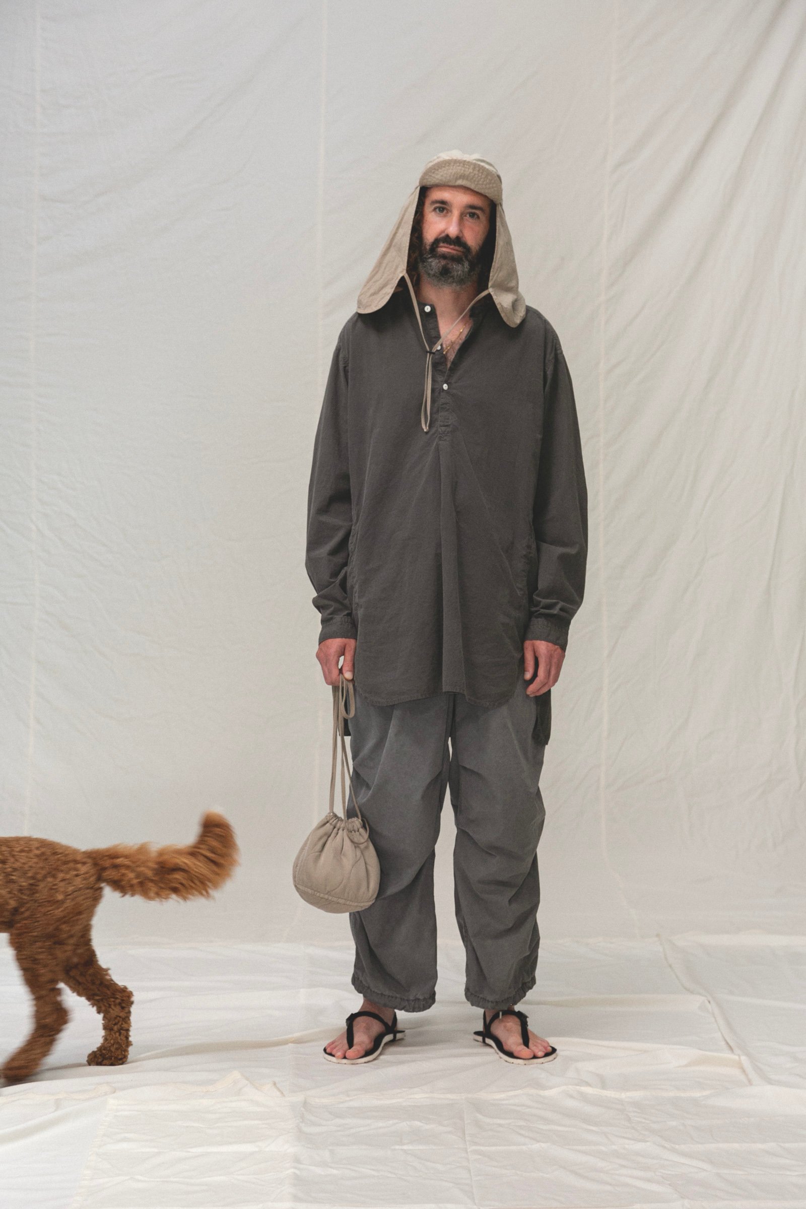 デビューコレクションでは、染料にコーヒーや紀州備長炭、クチナシなどの自然素材を採用。「経年変化」を楽しむことができるという。ホワイト、ブラウン、ペールピンクをカラーパレットに、ナイロン素材に製品染めを用いたミリタリージャケットや、オリジナルファブリックとしてキュプラのリップストップ生地を使用したシャツ、メキシコの先住?であるタラウマラ族が履いている「ワラーチ」から着想を得たレザーサンダルなど全15型をラインナップする。