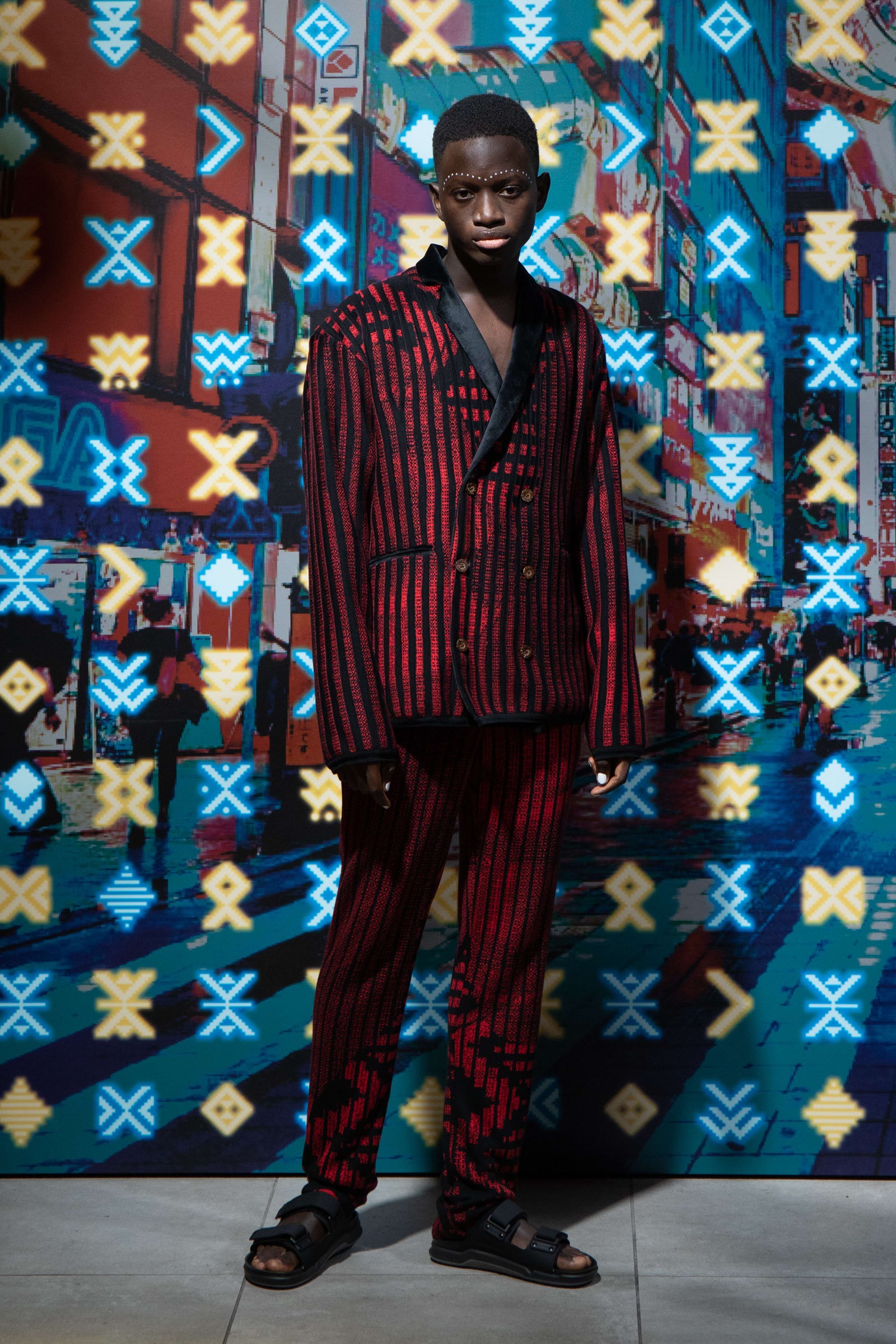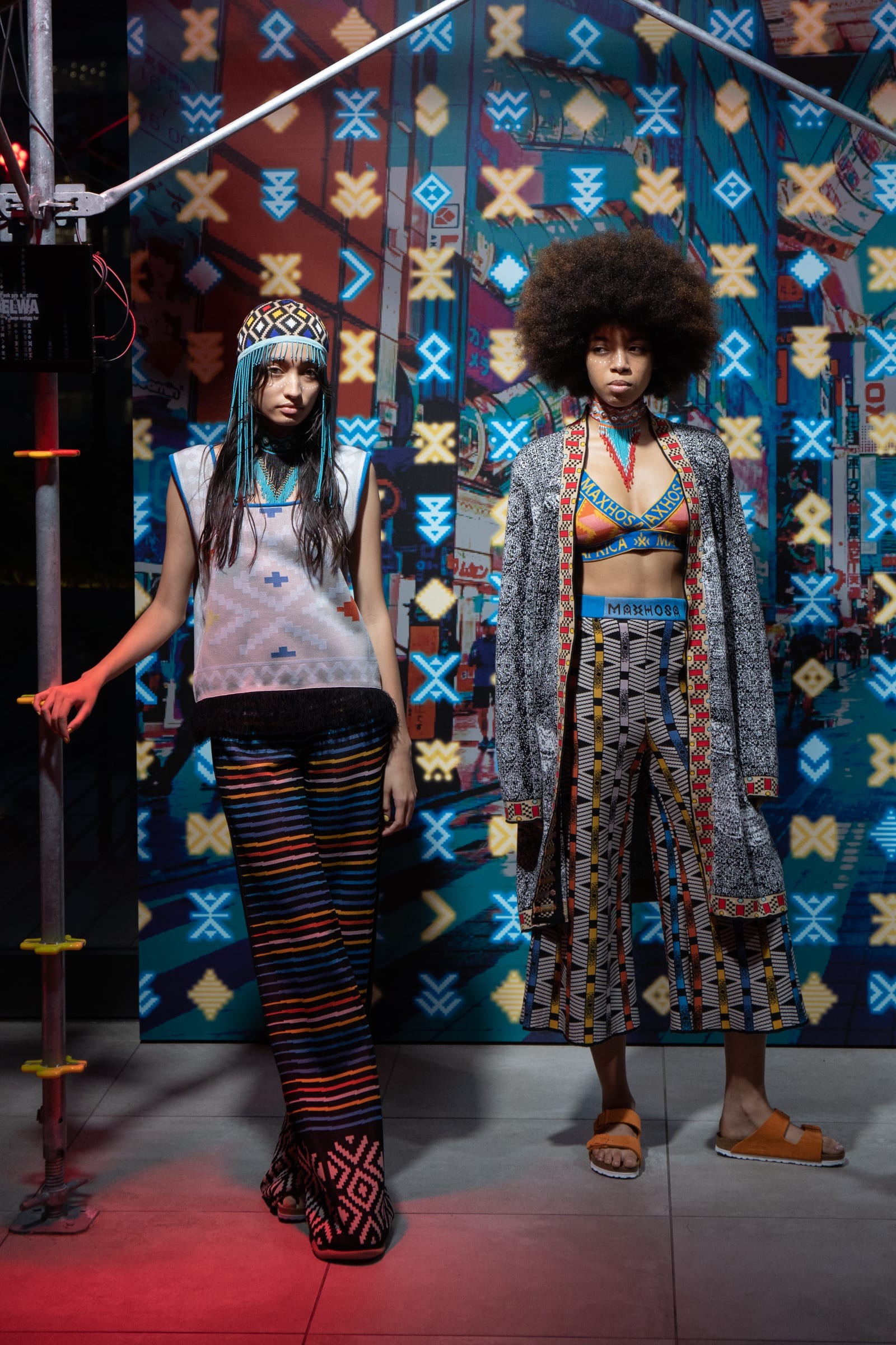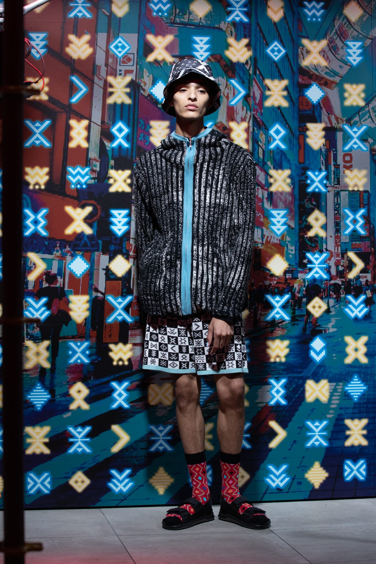 4回目となる今シーズンは、南アフリカでラデュマ?ノゴロ(Laduma Ngxokolo)が2012年に立ち上げたラグジュリーニットウェアブランド「マコサ アフリカ」にフォーカス。デザイナーのルーツでもあるコサ族に継承されてきた伝統的なモチーフをデザインに落とし込み、美しく織り上げられたニットピースを発表してきた。作品の数々はニューヨーク近代美術館やスミソニアン博物館に所蔵されるなど、デザイナーのラデュマはアフリカを代表するデザイナーの1人として知られている。