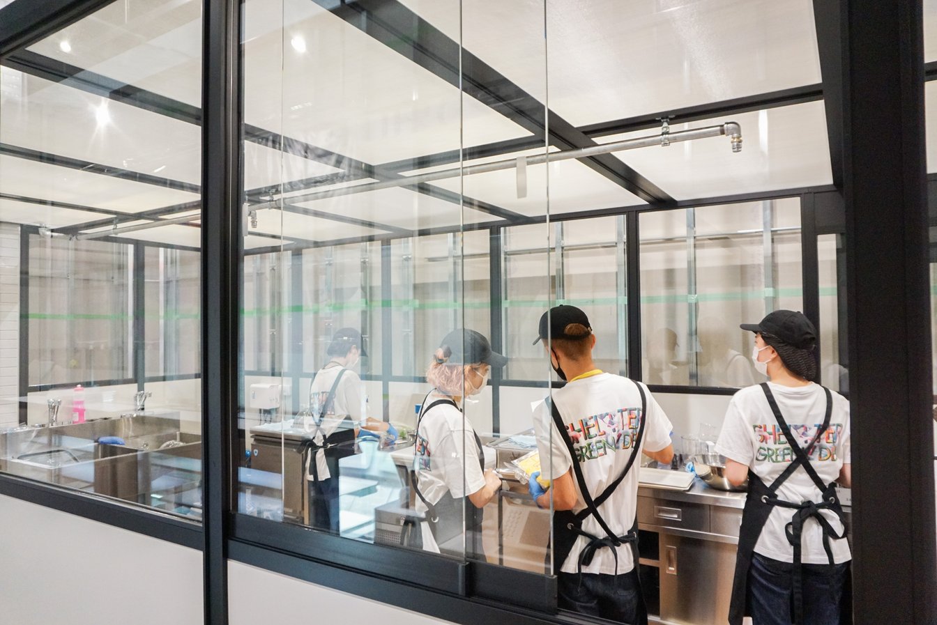 シェルターデリでは、デリカフーズホールディングスが運営する「青果日和」と協業し、チョップドサラダや惣菜を提供。都内の有名フレンチレストランでシェフの経験を積んだスタッフを中心にメニューを開発し、栄養バランスを重視したほか、ノンフライで低カロリーに抑え、また防腐剤フリーで安心して食べられることを徹底したという。1号店ではサラダ4種、惣菜10種をラインナップし、Sサイズ(200g、390円)とMサイズ(400g、590円)の2サイズを用意。幅広い年代にとって食べやすい量と、気軽に手に取れる価格帯を意識した。テイクアウトのほか、16席のイートインスペースを配置する。