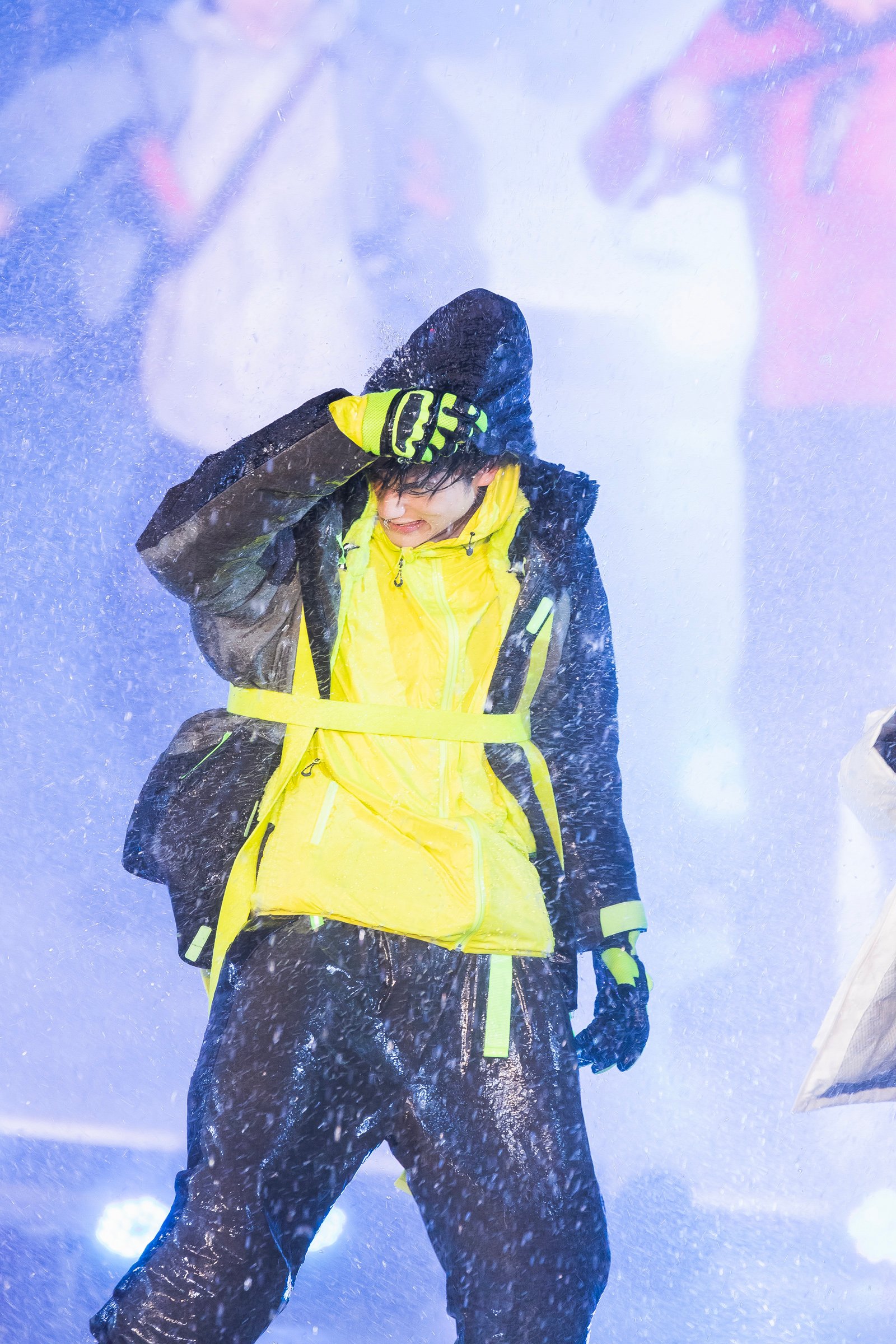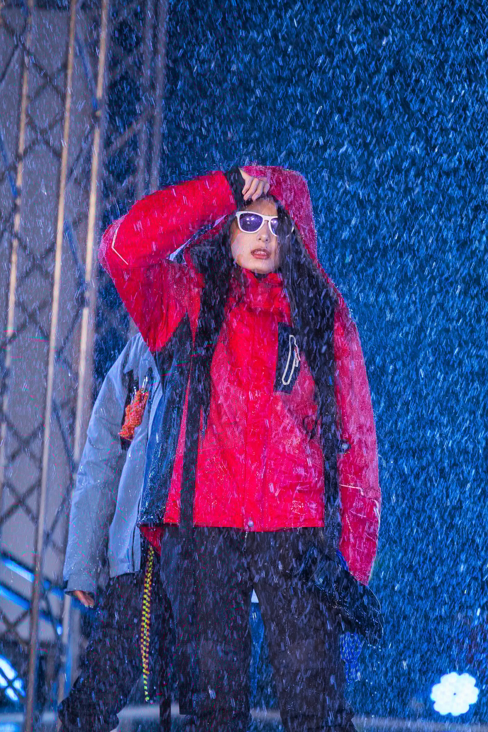 今回は初の野外開催で、屋外プールの中にランウェイを設置した業界初のファッションショー。風や雨、雪を水上のランウェイで再現したほか、炎を用いた演出を取り入れるなど、これまで以上に過酷さを増したショーとなった。過酷な気象にも強い防風、防寒、撥水、防水を備えたウェア?防水防寒シューズを発表した。