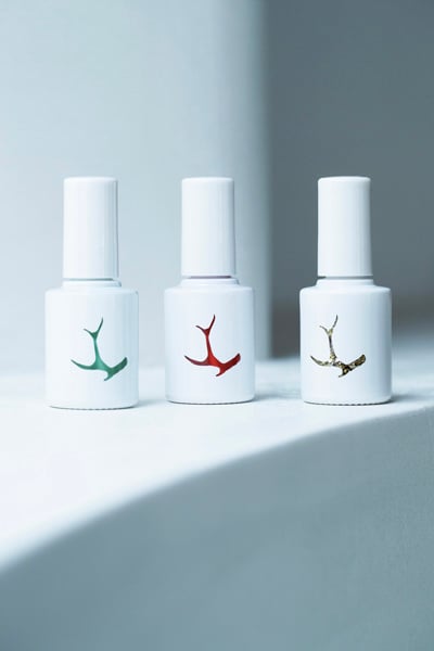 このたび登場した「uka pluie study」は、PLUIEの環境を取り巻く色から創造された、3色がラインナップ(各 税込2750円)。ネイルボトルには、PLUIEのアイコンであるアントラーマークが施されています。