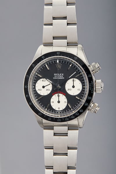 今回落札されたモデルは、1957年11月22日に製造されたことを示すオメガのアーカイヴ抄本とオリジナルの製品資料が付属。特徴的なのは従来黒色の文字盤が経年変化で茶色に変わる通称「トロピカルダイアル」で、ダイアル全体が均一に変色していることに加え、針の夜行塗料も同様に変色していることから全てのパーツが交換されておらず純正であると見られている。そのほか、時針と分針の大きな「フロードアロー」や、メタル製のベゼル、楕円形で独特のOMEGAの「O」の文字などが後継モデルとは異なる唯一無二のデザインであることなどから落札予想価格から大きく上振れした。