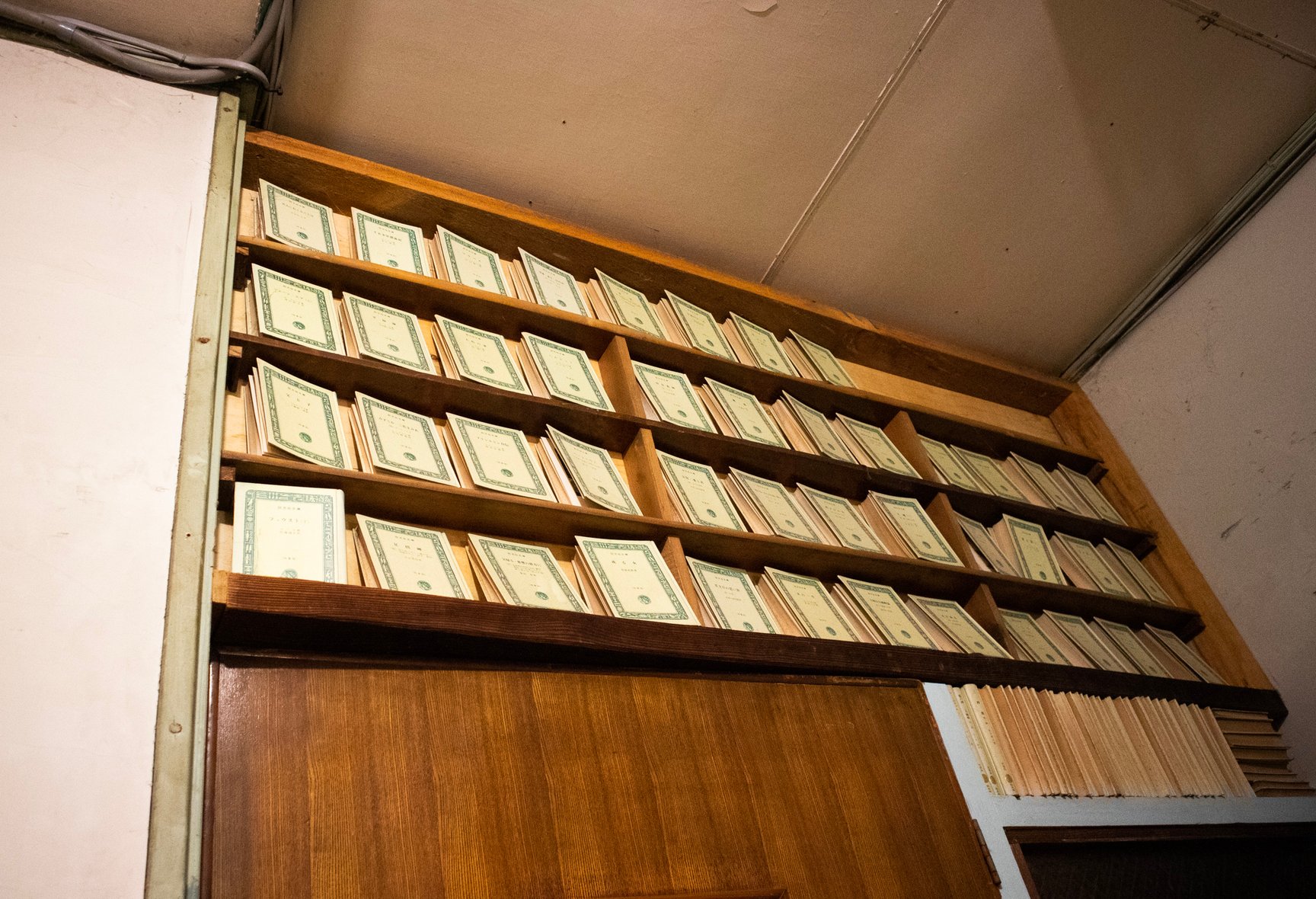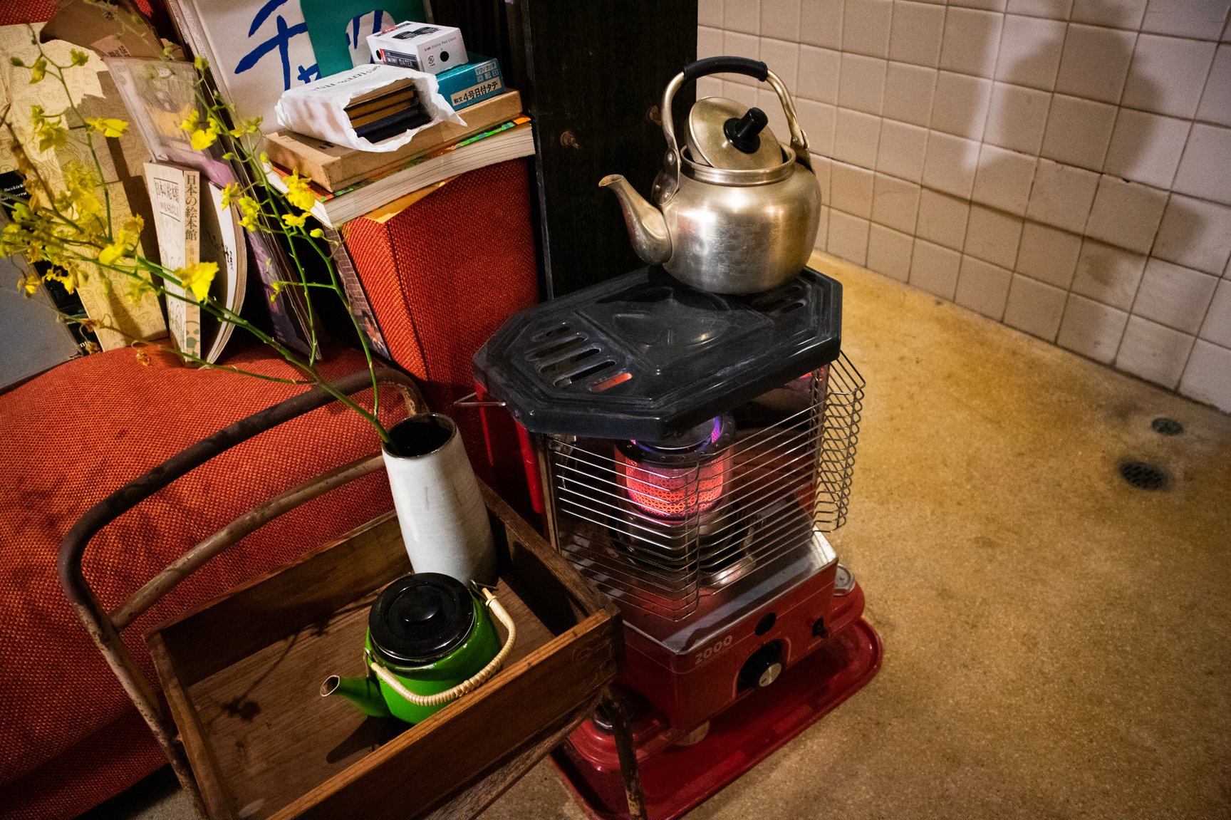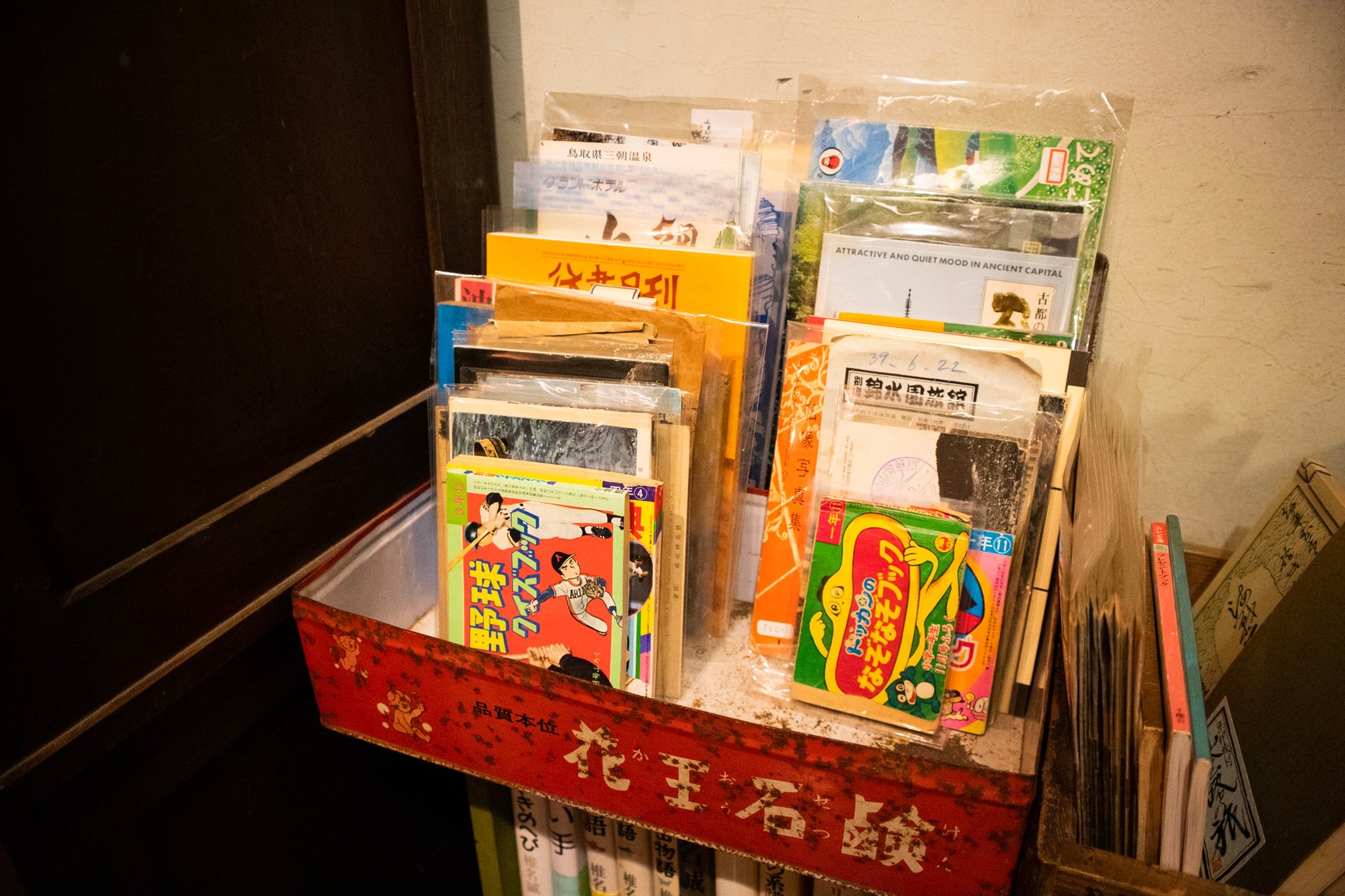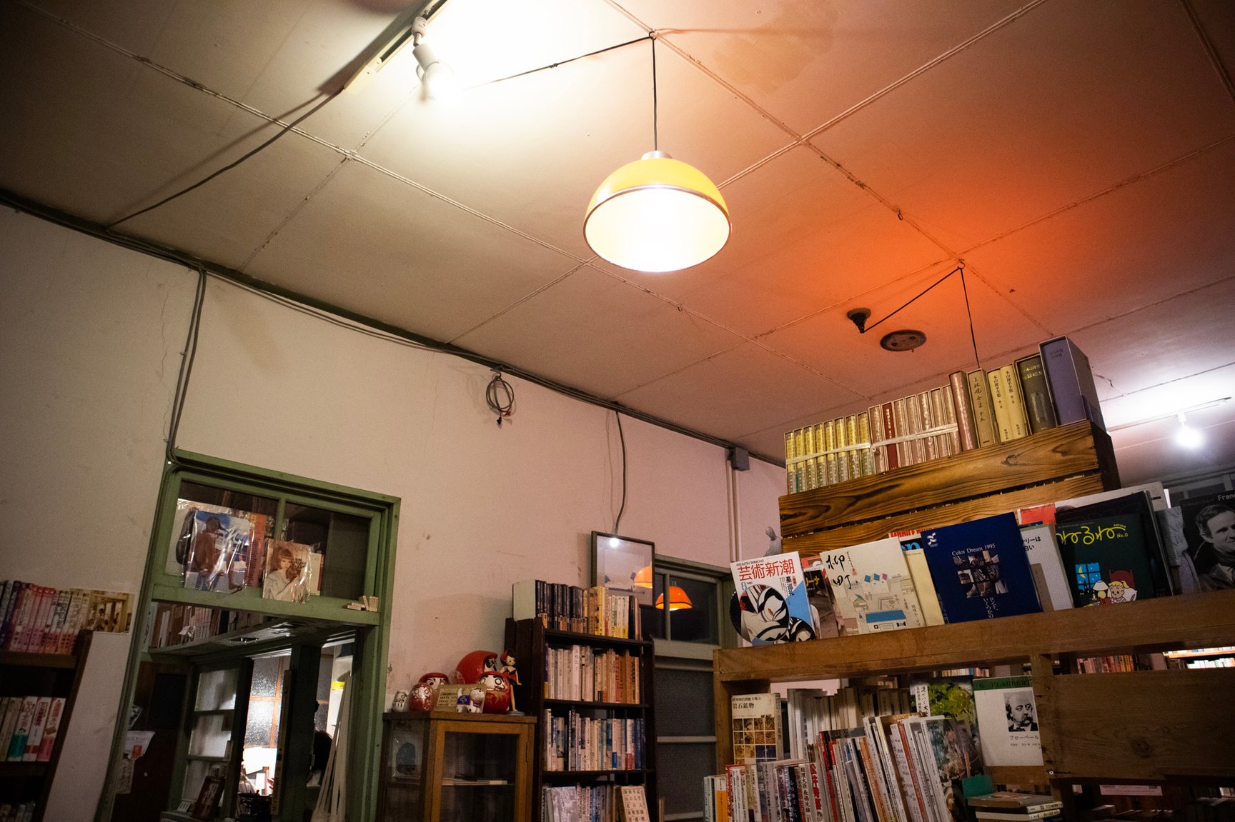 店舗の内装は診療所だった当時の面影を残した古い佇まい。薬袋やガラスの薬瓶、顕微鏡など病院で使われていた道具が随所に並び、店内には深夜ラジオが微かに流れている。棚に入りきらなかった書籍は棚の近くに山積みされているほか、旧式の扇風機や、レトロなポスター、やかんが置かれた石油ストーブ、形や色がそれぞれ異なる古びた椅子、熊の置き物など、昭和で時間が止まったような品々が雑多に並んでいるが、不思議と統一感のある空間に仕上がっている。店主の藤井氏によるとその多くは譲り受けたものや、拾ってきたものを思うがままに置いただけだという。