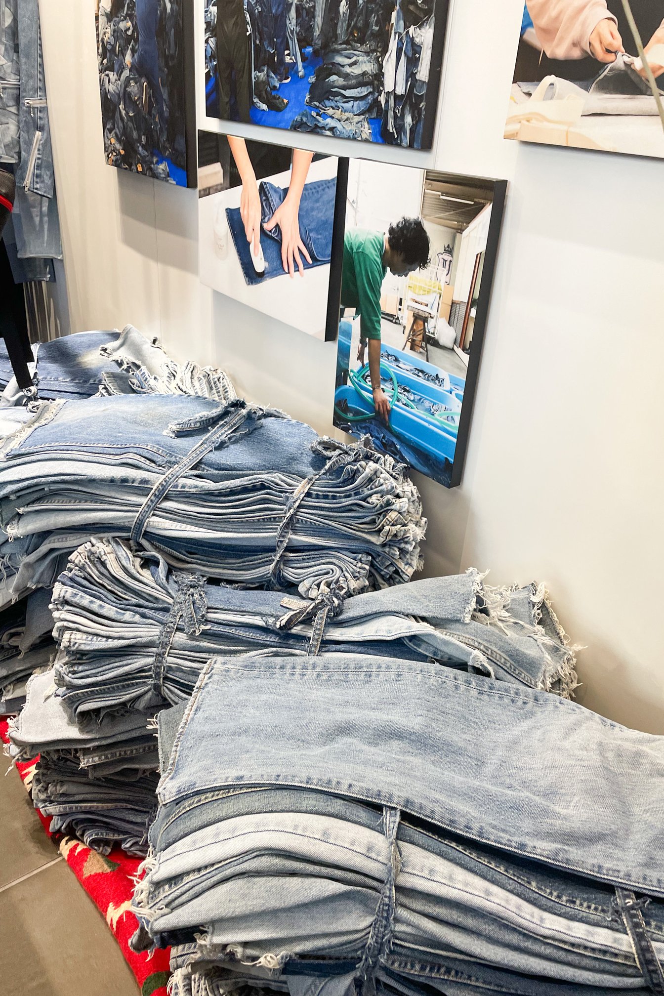 廃棄予定だったユーズドストックのデニムも展示された(左のスカートはルール ロジェットの商品)