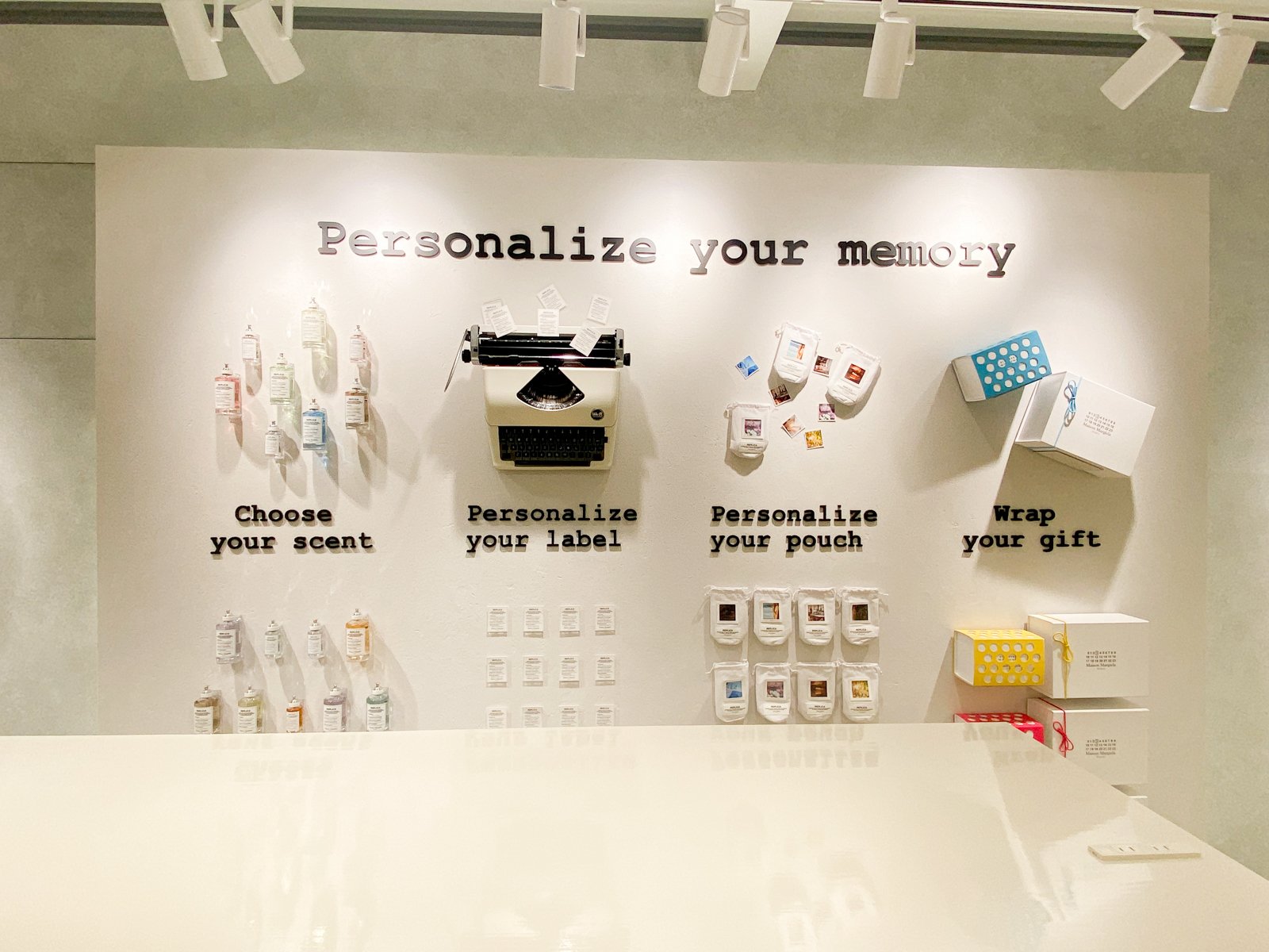 店舗限定のコンテンツとして、パーソナライゼーションサービスを提供。「レプリカ オードトワレ」(100mL)または「レプリカ キャンドル」(165g)を対象に、ラベルの一部(2段目、4段目)に好きなテキストを施すことが可能で、またレプリカ オードトワレの100mLサイズを購入すると、数量限定でパーソナライズドポーチを付属し、写真を挿入できるポケット付きで、自分自身でもギフトでも楽しめるアイテムだ。表参道ヒルズに長期出店していたポップアップストアで好評だったギフトボックスは引き続き同店舗のみで提供する。