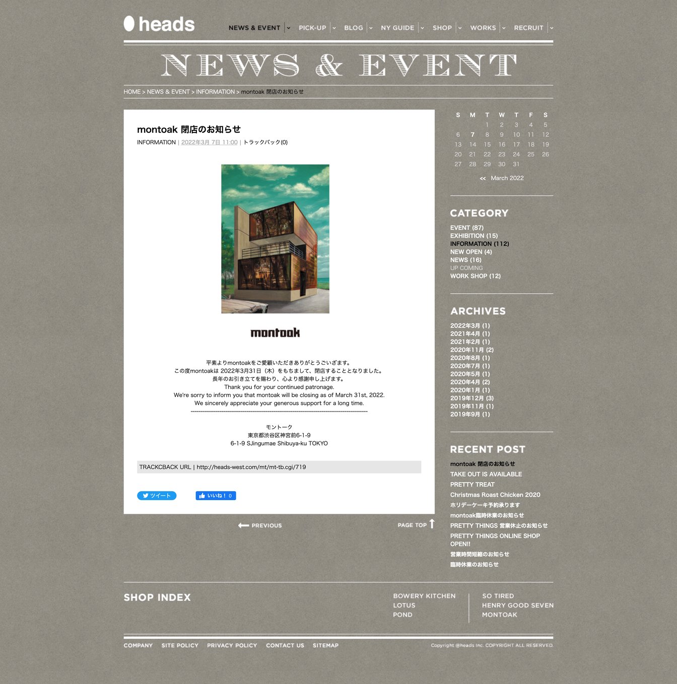 ジュンは「時代は移り変わり、文化の発信の在りようも多様化している。原宿?表参道でのモントークの役割は果たせた」として閉店を決めたという。