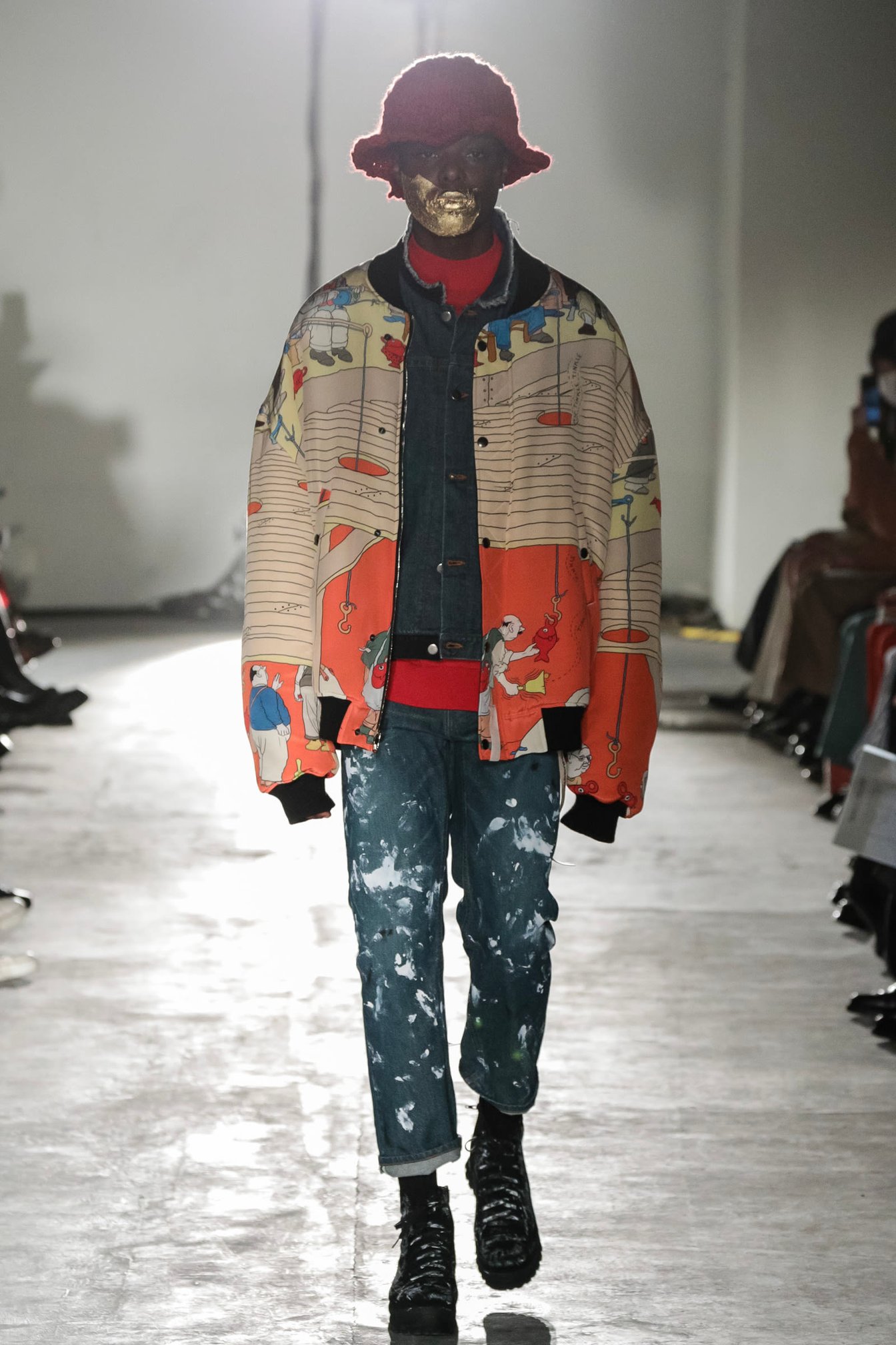 いきなりオンラインでの発表だった知らないブランド、「メゾン シュン イシザワ(Maison Shun Ishizawa)」を取り上げるのは、北海道出身で、北海道を拠点にブランドを立ち上げたことに軽い驚きを感じたからだ(本人は、遠からず東京に移転する意思を表明していたが)。しかもテーマがヤンキーである。聞くと、北海道では、ほとんどヤンキーは見かけないようだが、デザイナーにとって、ヤンキーというのは、生き方に筋が通っていて、反骨精神溢れるカッコいい存在のようで、その象徴のようなボンタンにスカジャンに、スカルをモチーフにしたプリントや刺繍(スカルの写楽もあり)まで、イシザワは、せっせと制作している。それを身に纏った美しいヤンキーが札幌の商店街を練り歩くイメージ動画は、ステキだ。もはやガイジンの視点と言えるかもしれない。こういうことができるのもファッションの力だろう。東京に来て、本物のヤンキーに遭遇してもうろたえずに初心を貫いてほしい。