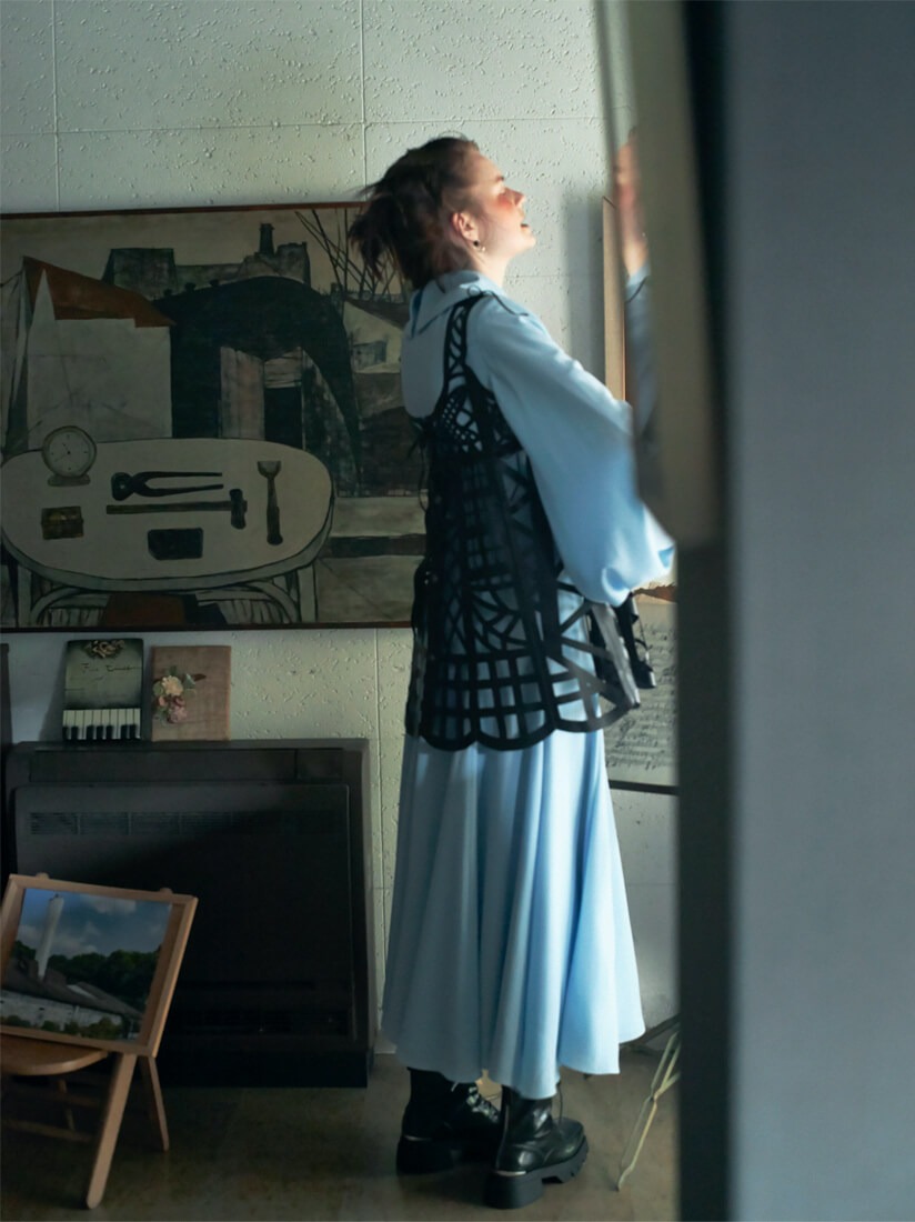 vest by NOZOMI MASUI, dress by NATSUMI OSAWA