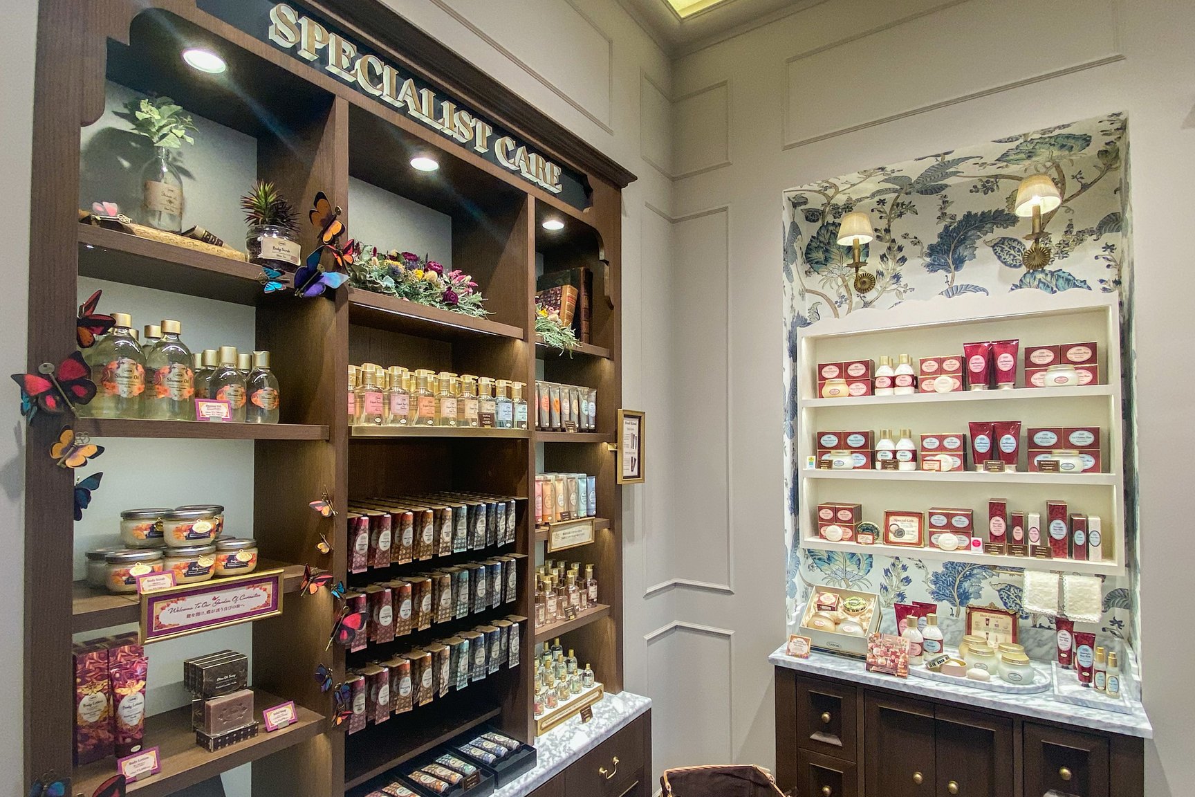 サボン アトリエ スパは目黒川沿いに位置し、店舗面積は111.9平方メートルを有する。店内中央にシンボルのウォータースタンドを設置し、さまざまな商品を試すことができる。人気のボディケアからフェイスケア、ヘアケアなどフルラインナップを揃え、パーソナライゼーションサービスを提供するほか、「ロスフラワー」を活用したスペースを設け、容器回収プログラムをスタートするなどブランドの魅力を発信する最先端の店舗となる。