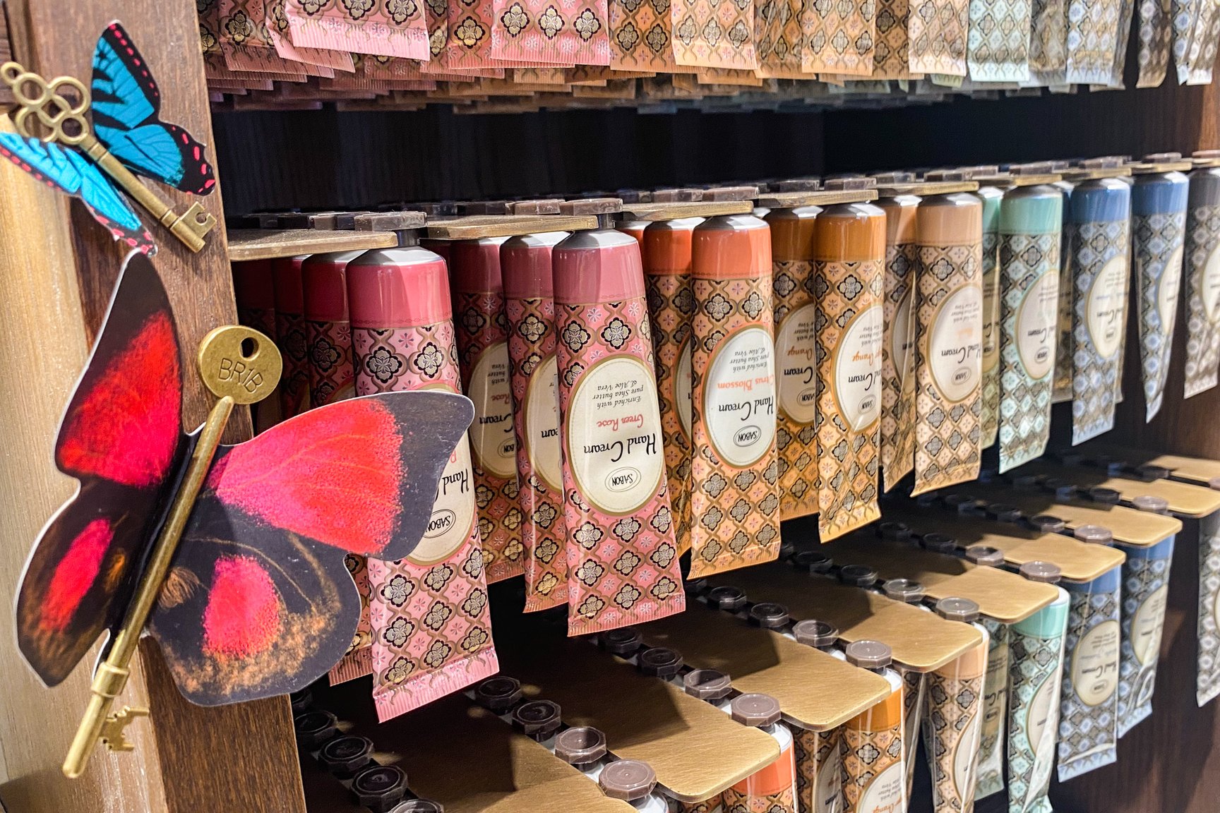 同店限定のパーソナライゼーションでは、製品に名前やイニシャル、メッセージ、日付を刻印するエングレービングサービスを提供。メッセージカードへのカリグラフィーサービスも用意し、ギフト需要に応える。エングレービングサービスは、対象商品を含む税込7000円以上の購入で利用可能、カリグラフィーサービスは税込7000円以上の購入でサボンのオリジナルタグにメッセージを記入でき、またオリジナルメッセージカード(同385円)を選ぶこともできる。