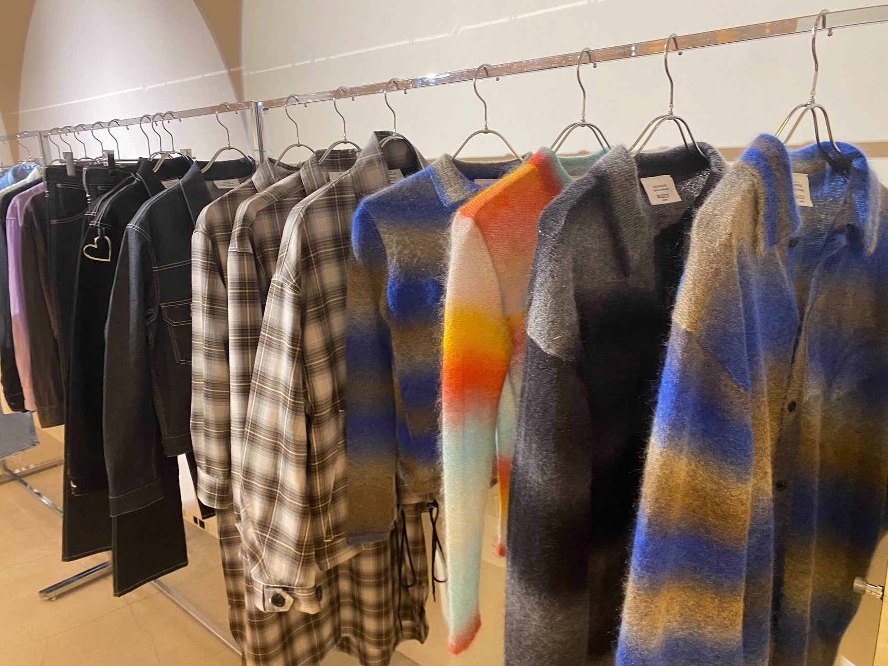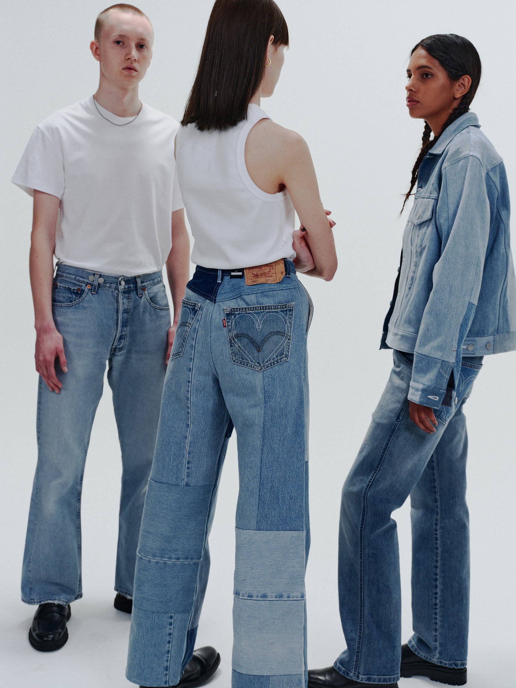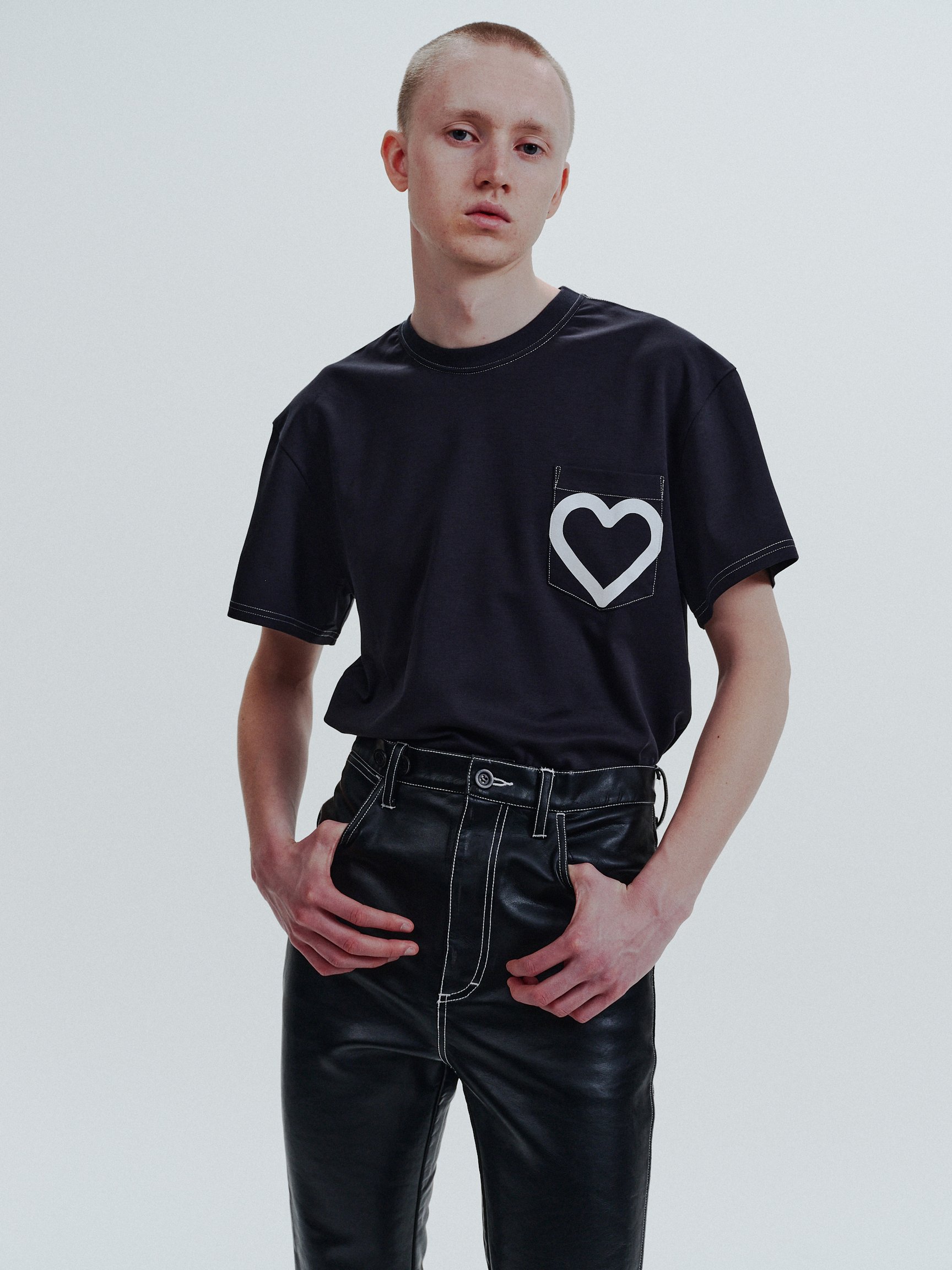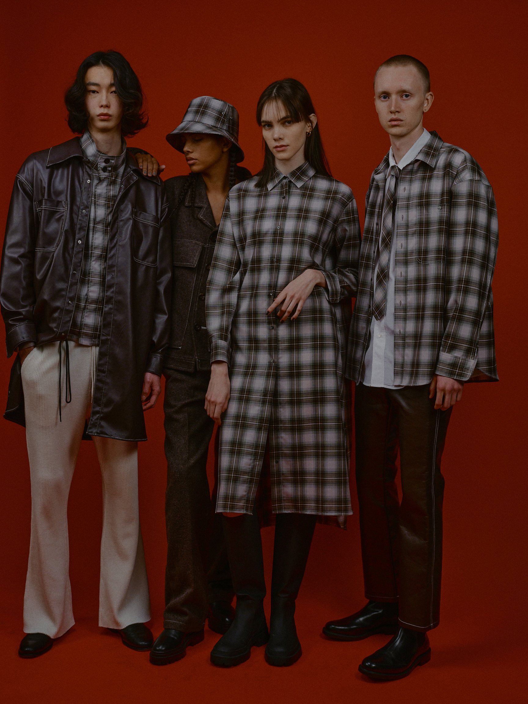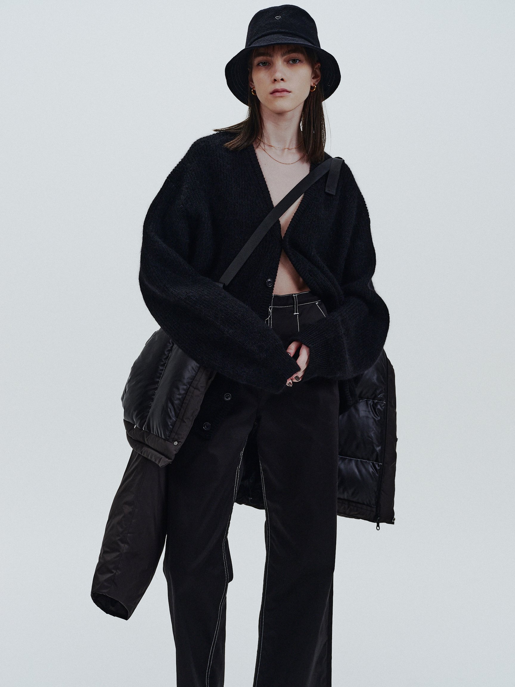 意匠権を取得したハートデザインは、ブランドがデビューシーズンから取り組んできた環境に配慮した服作りへの取り組みを表現している。3シーズン目となる今回のコレクションではタンクトップやTシャツ、サーマルなどの定番アイテムに加え、古着のデニムを再利用したデニムパンツや、ジャケット、コートなどのシーズンアイテムを含めた全60型を展開。そのうち、約40型のアイテムに環境に配慮した素材が使用されている。中でも、生地が工場で裁断される際に出た端材で製作した「Super Fine Wool Oversize Coat」は、ウール、アルパカ、ポリエステル、アクリル、ナイロンの5種類の素材が使用されており、サステナビリティへの取り組みをさらに強化した今シーズンを象徴するアイテムとなっている。